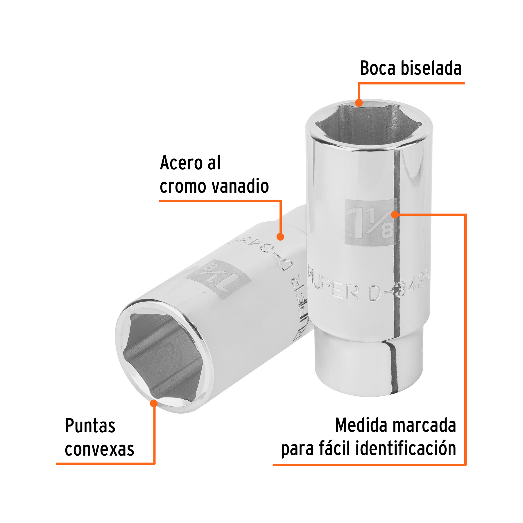 Dado largo de 1-1/8", 6 puntas, cuadro 3/4", Truper