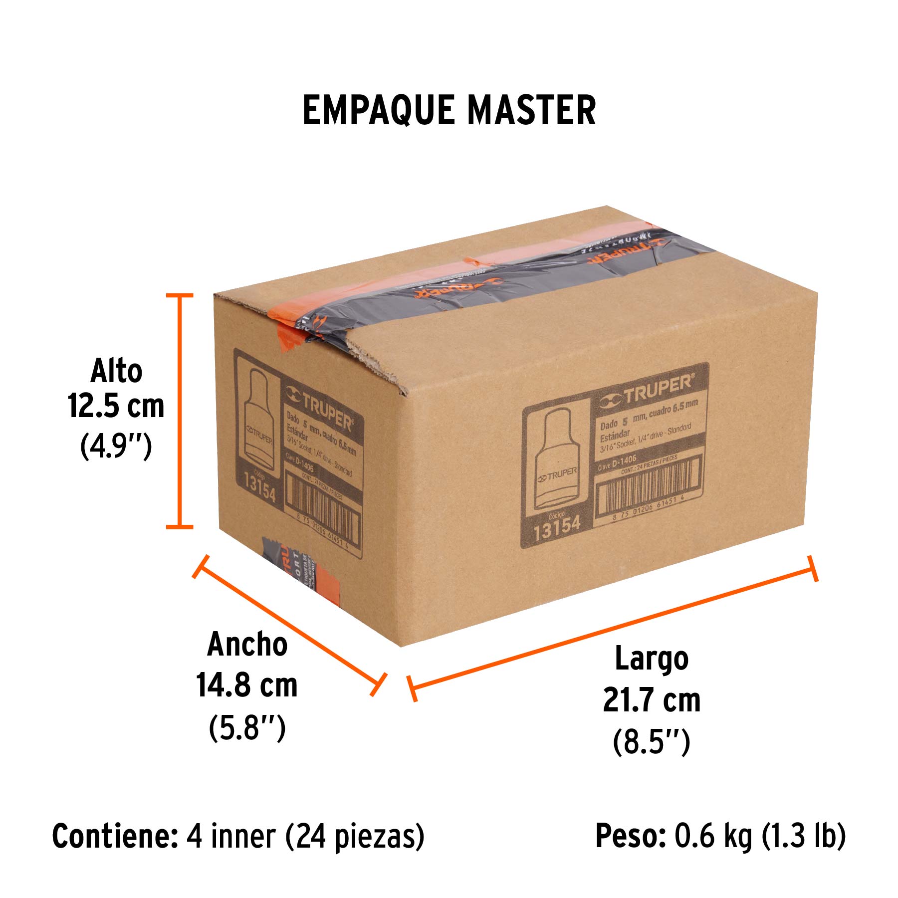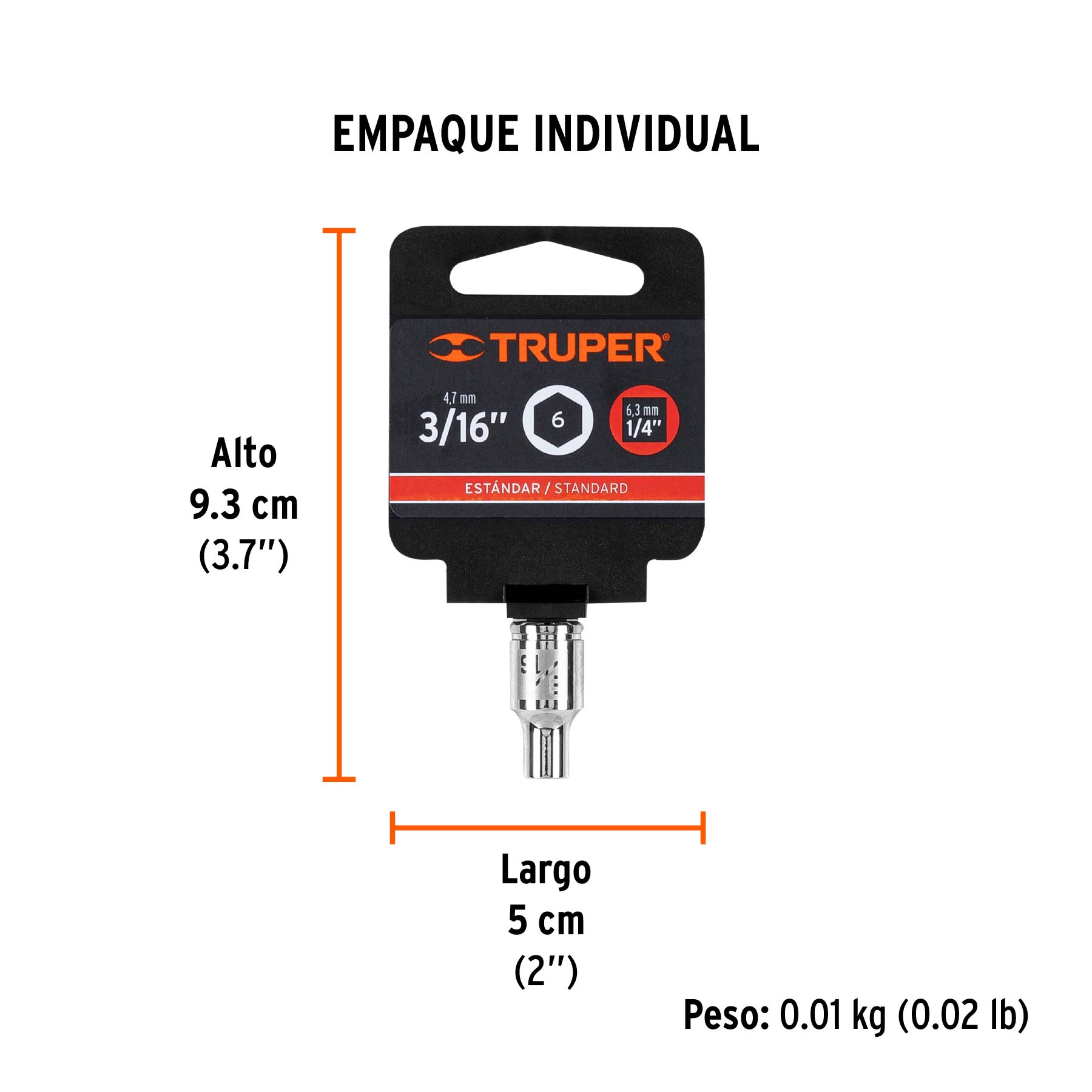 Dado de 3/16", 6 puntas, cuadro 1/4", TRUPER