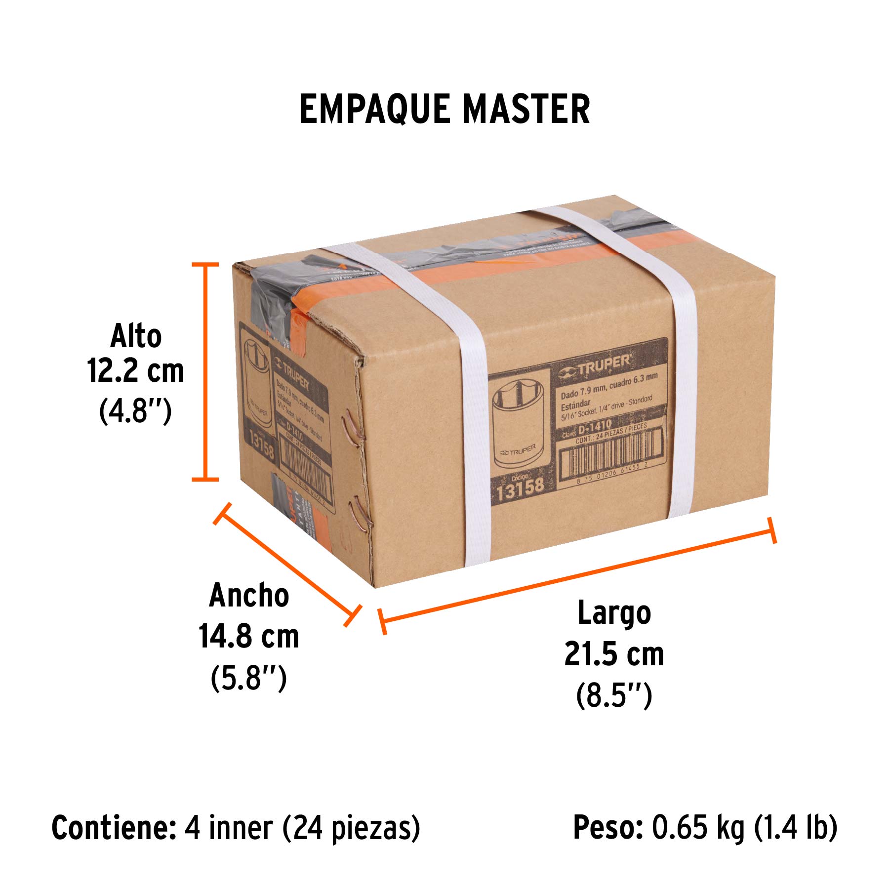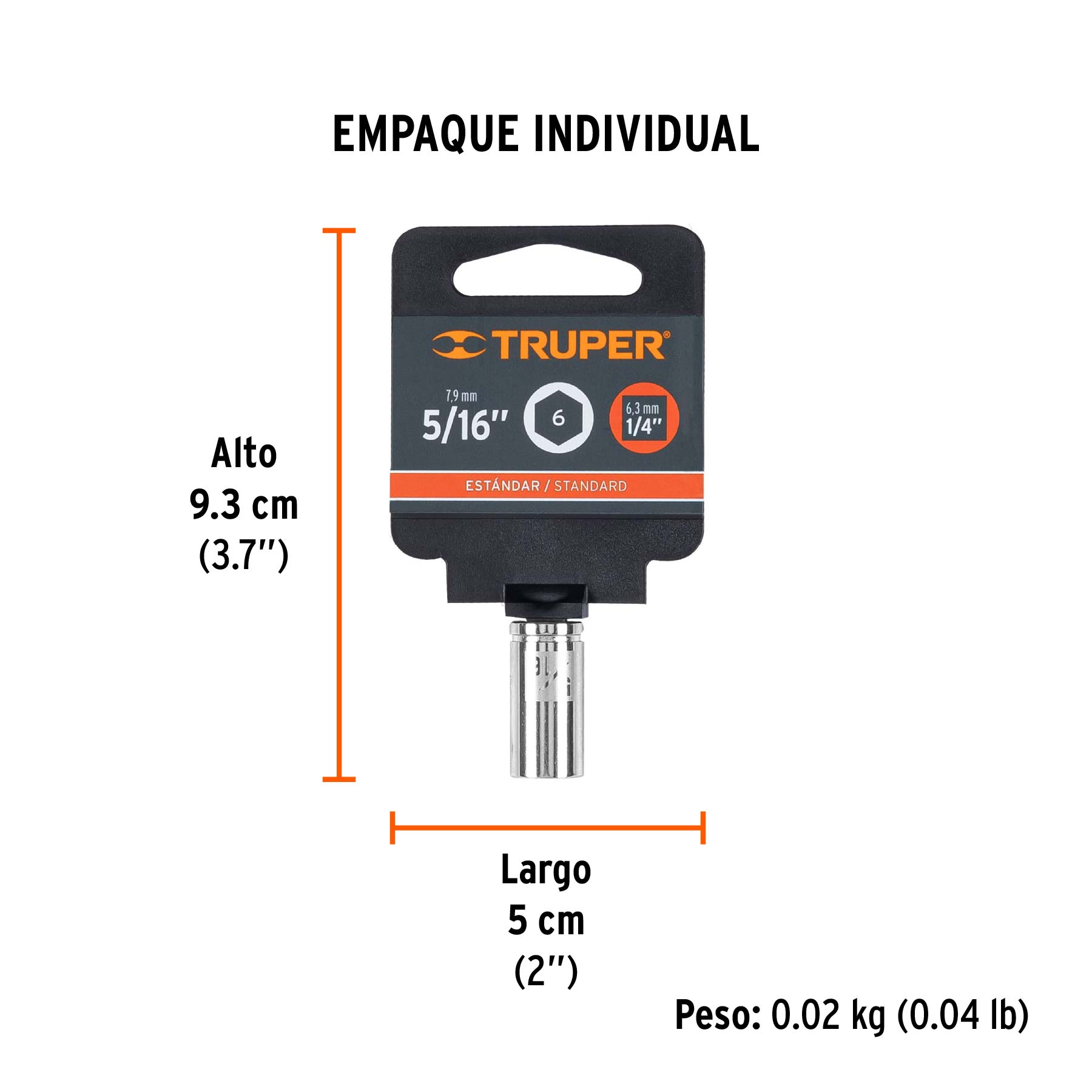 Dado de 5/16", 6 puntas, cuadro 1/4", Truper