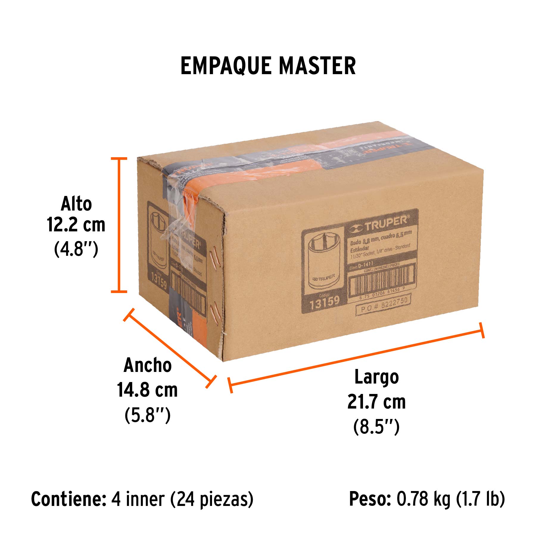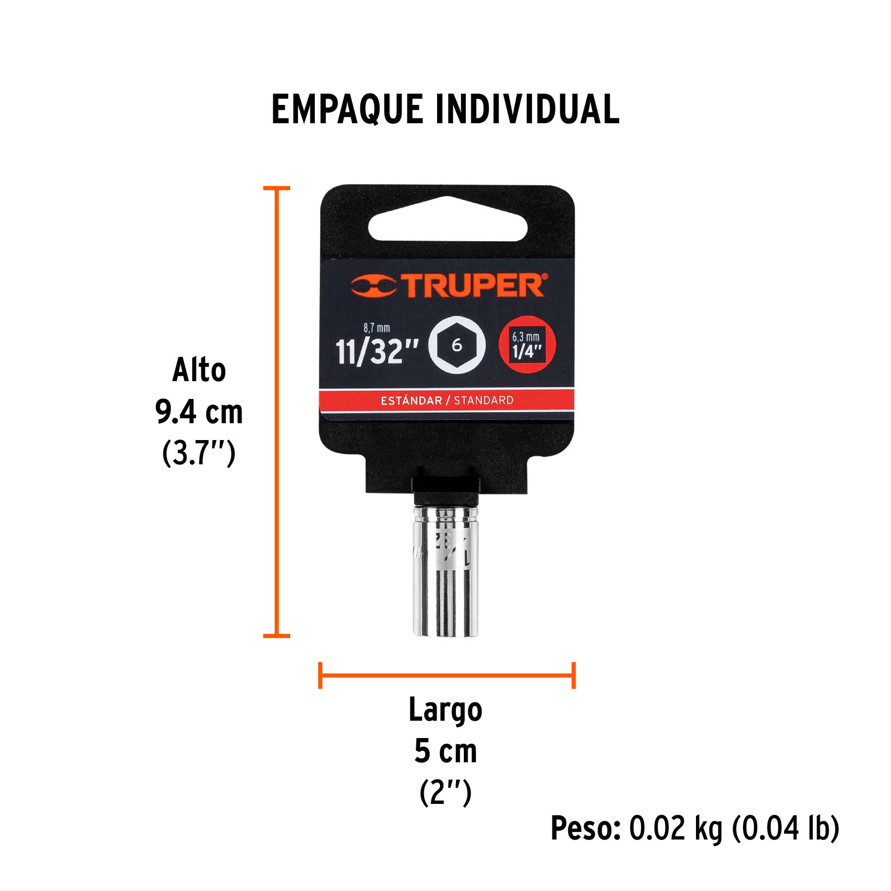 Dado de 11/32", 6 puntas, cuadro 1/4", Truper