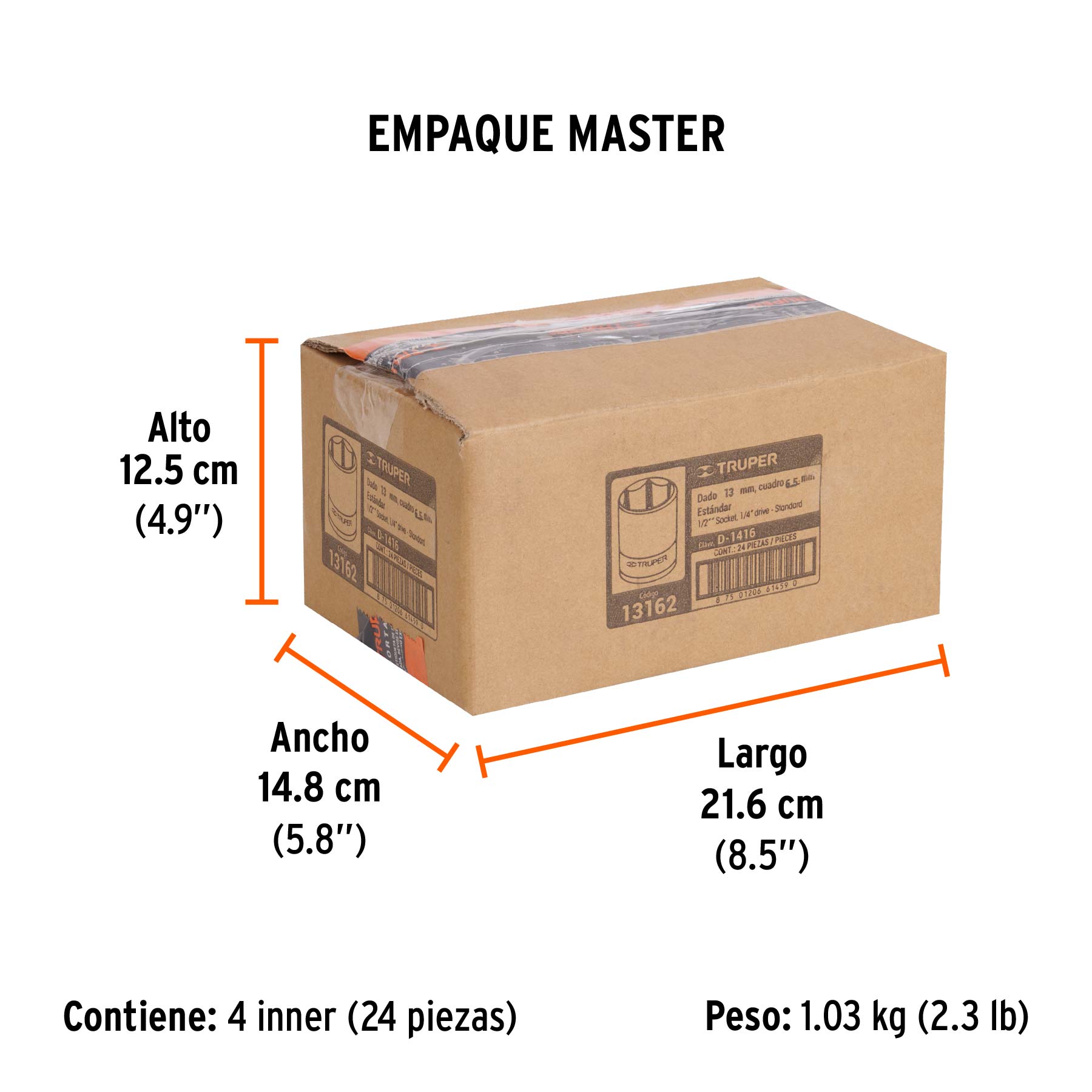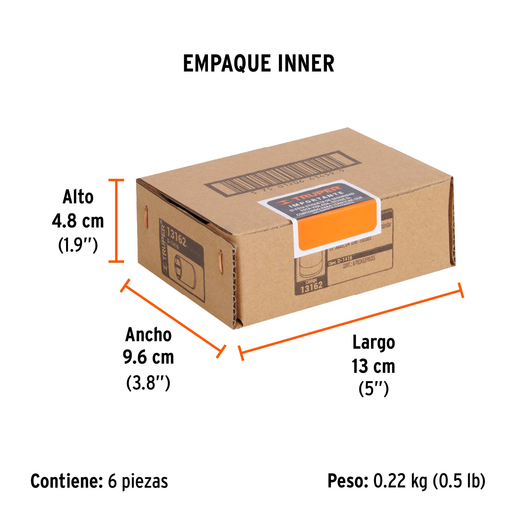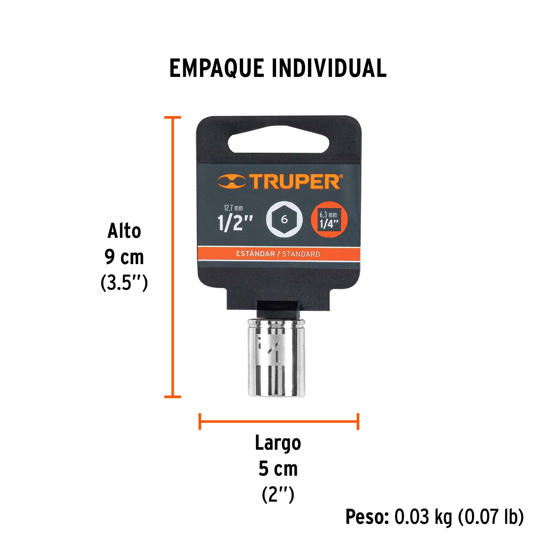 Dado de 1/2", 6 puntas, cuadro 1/4", Truper