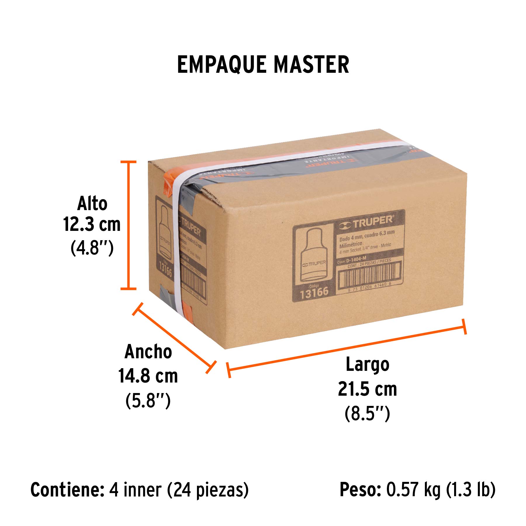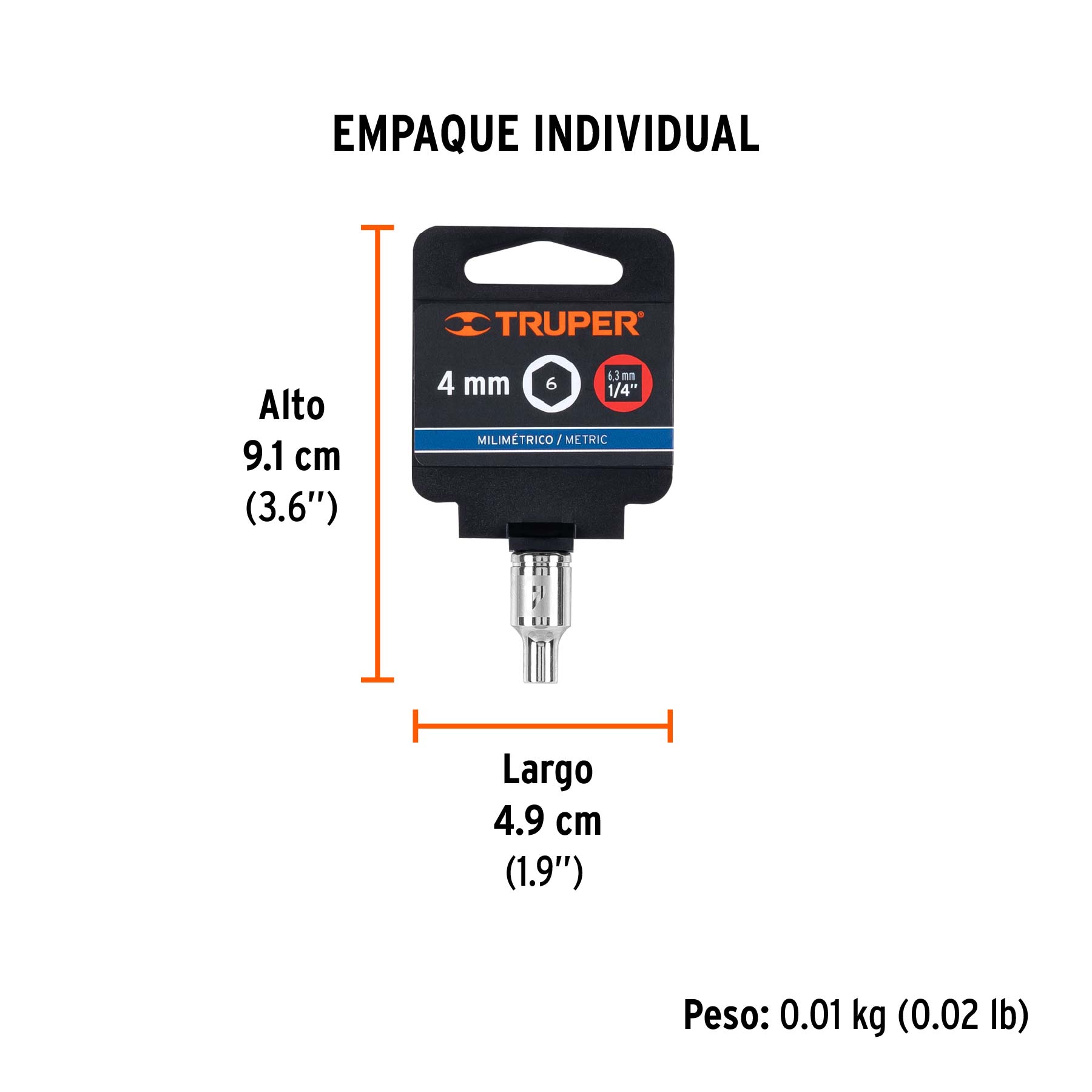 Dado de 4 mm, 6 puntas, cuadro 1/4", Truper
