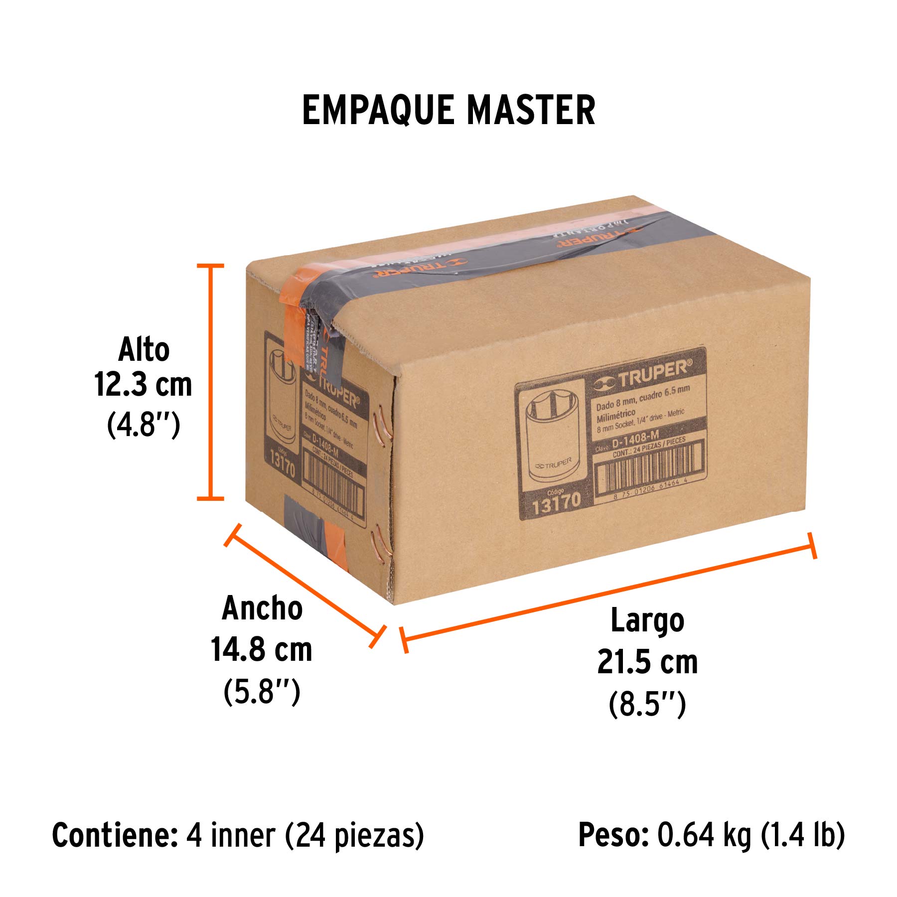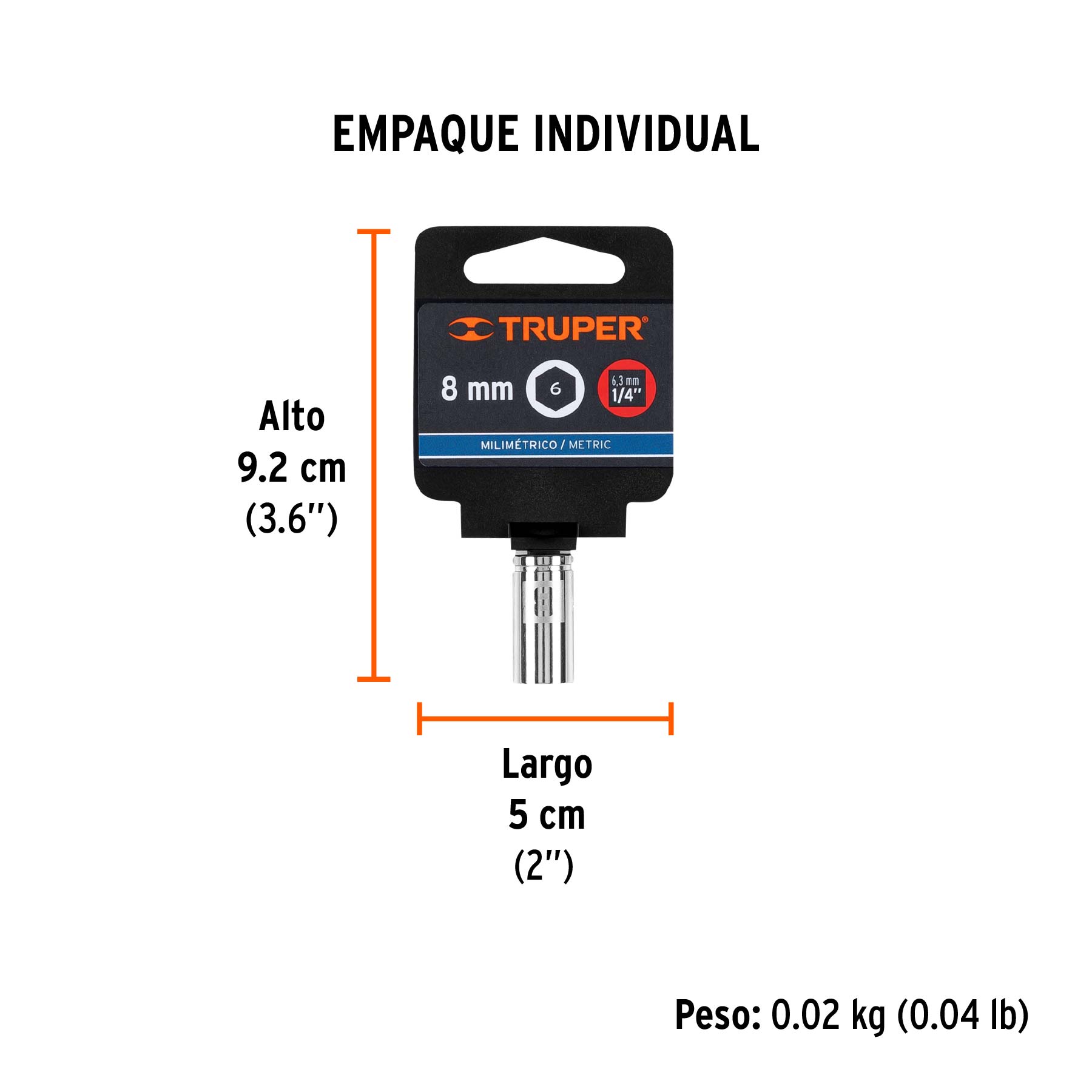 Dado de 8 mm, 6 puntas, cuadro 1/4", Truper