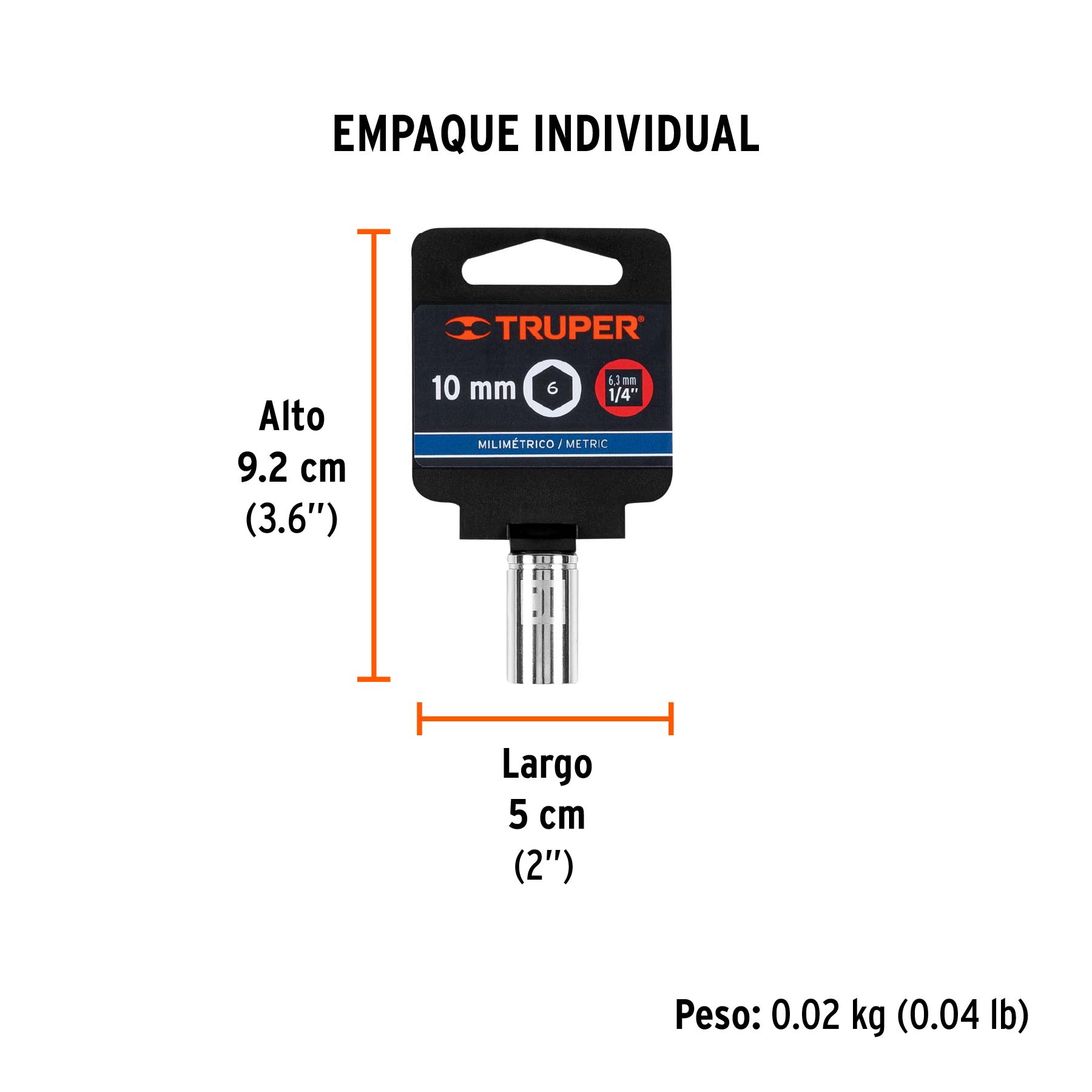 Dado de 10 mm, 6 puntas, cuadro 1/4", Truper