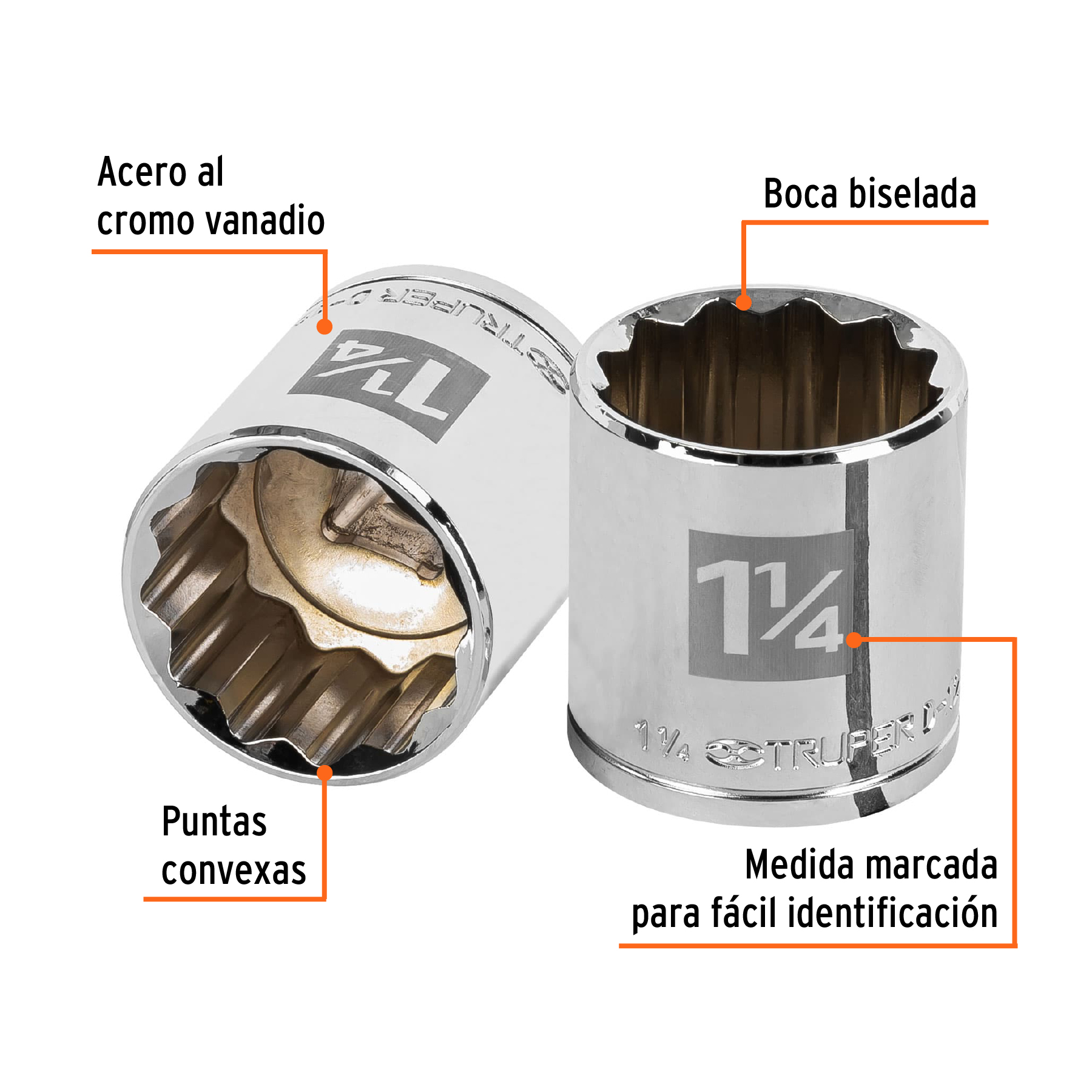 Dado de 1-1/4", 12 puntas, cuadro 1/2", TRUPER