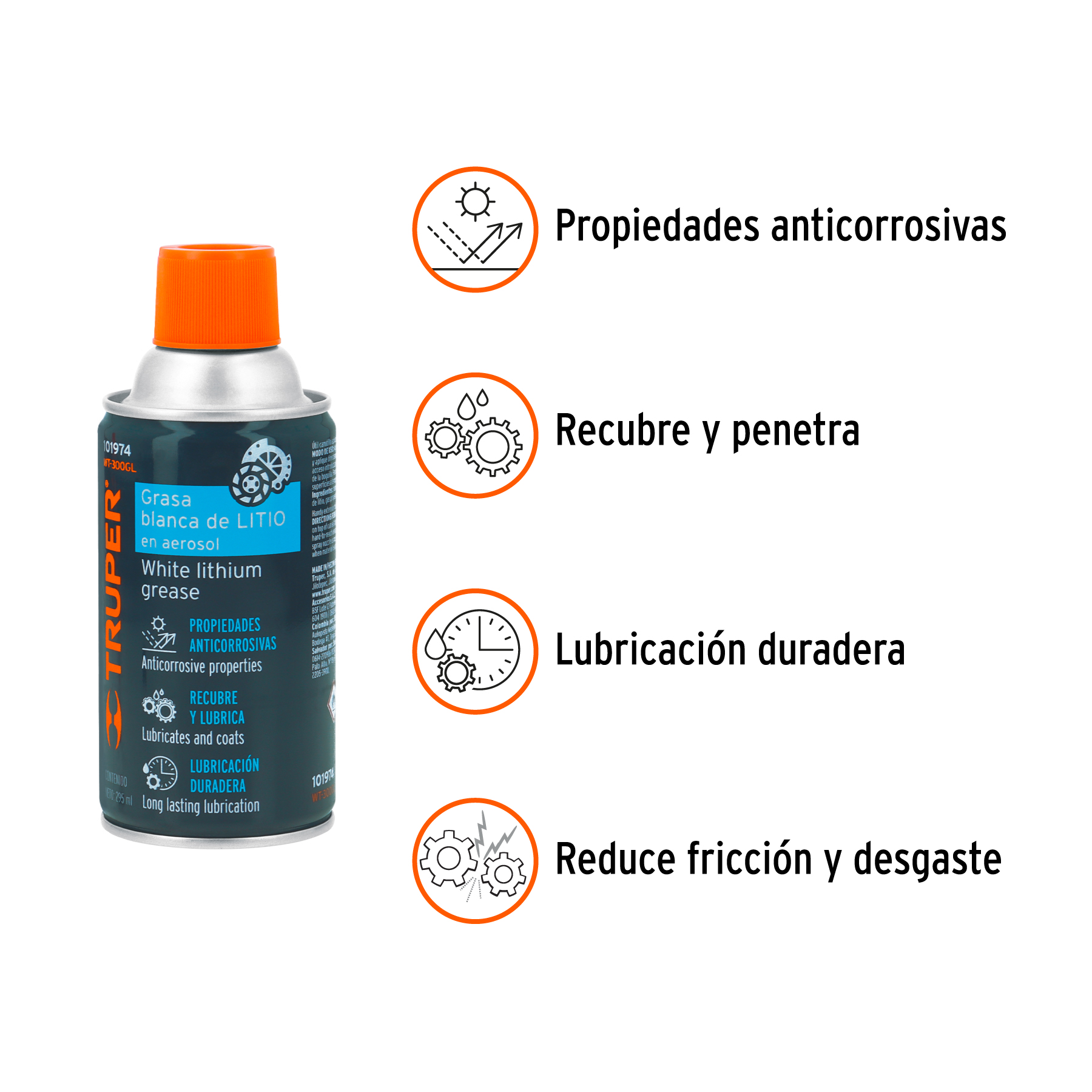 Grasa blanca de litio en aerosol 295 ml, TRUPER