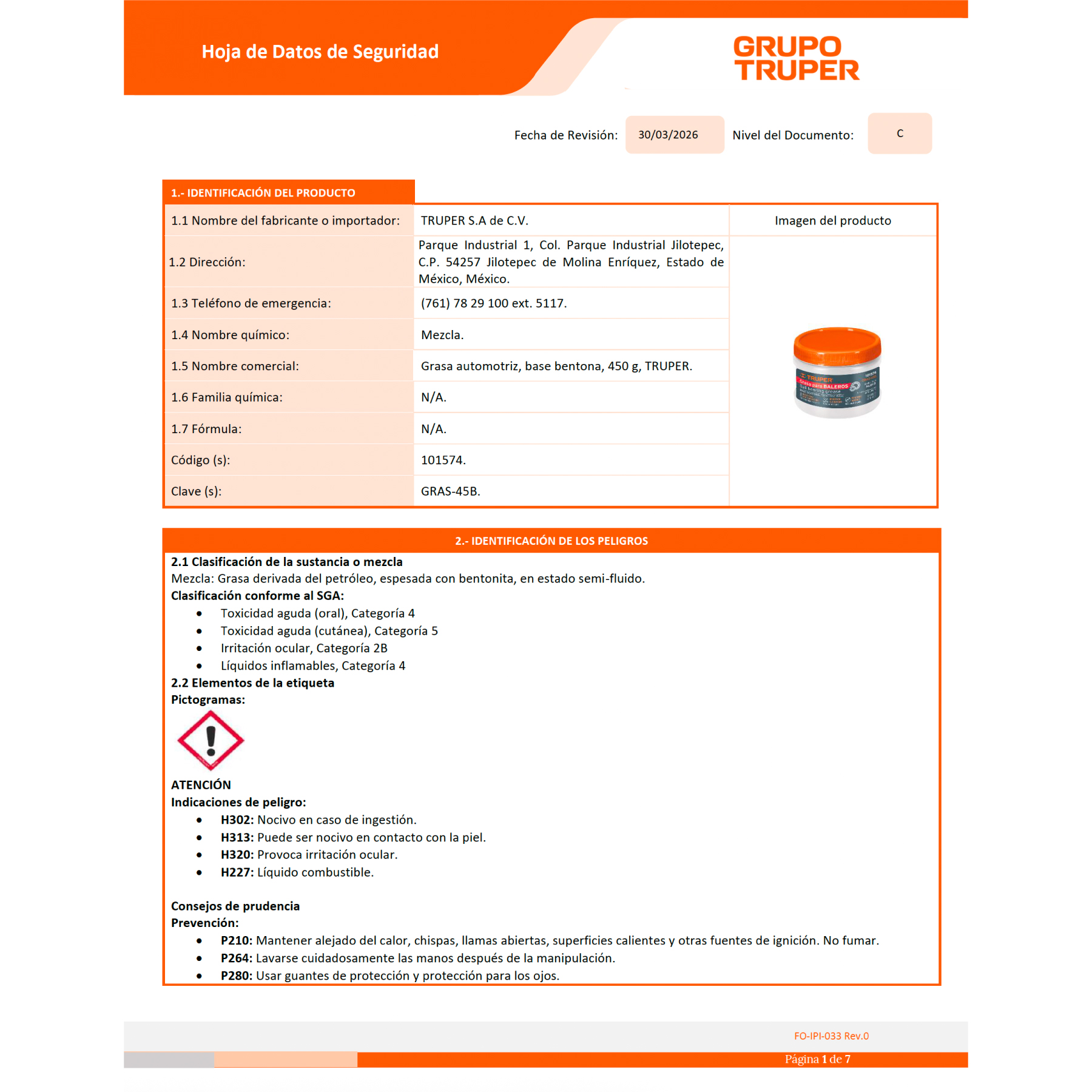 Grasa automotriz, base bentona, 450 g, TRUPER