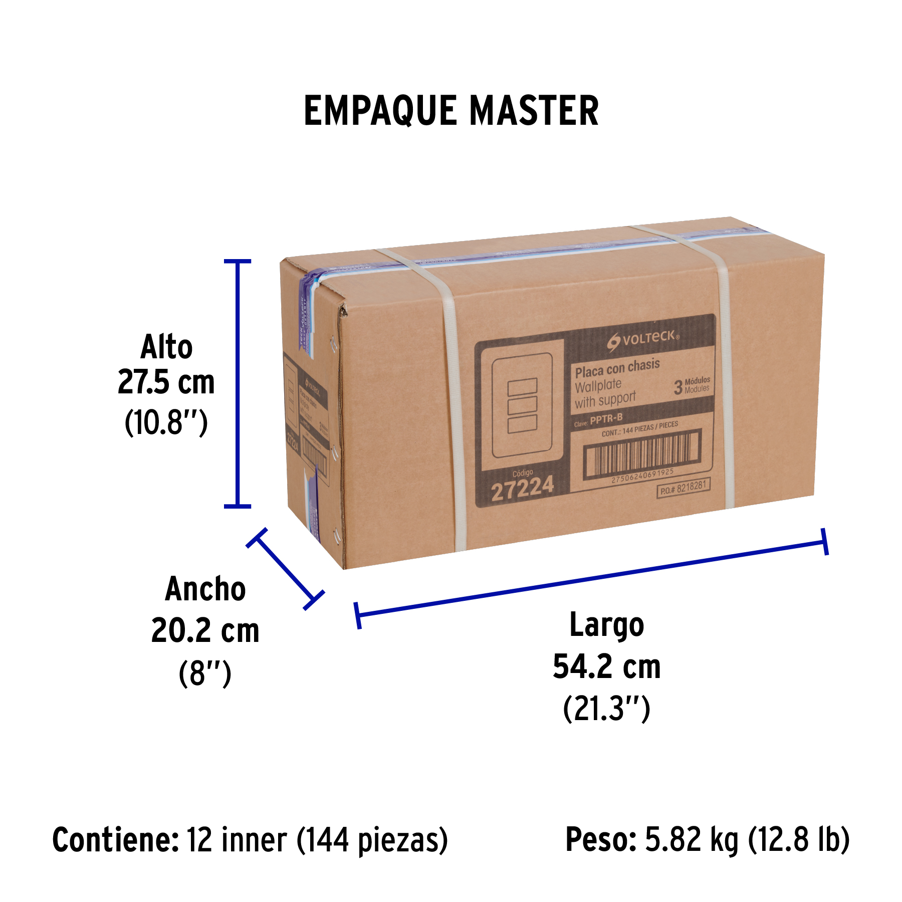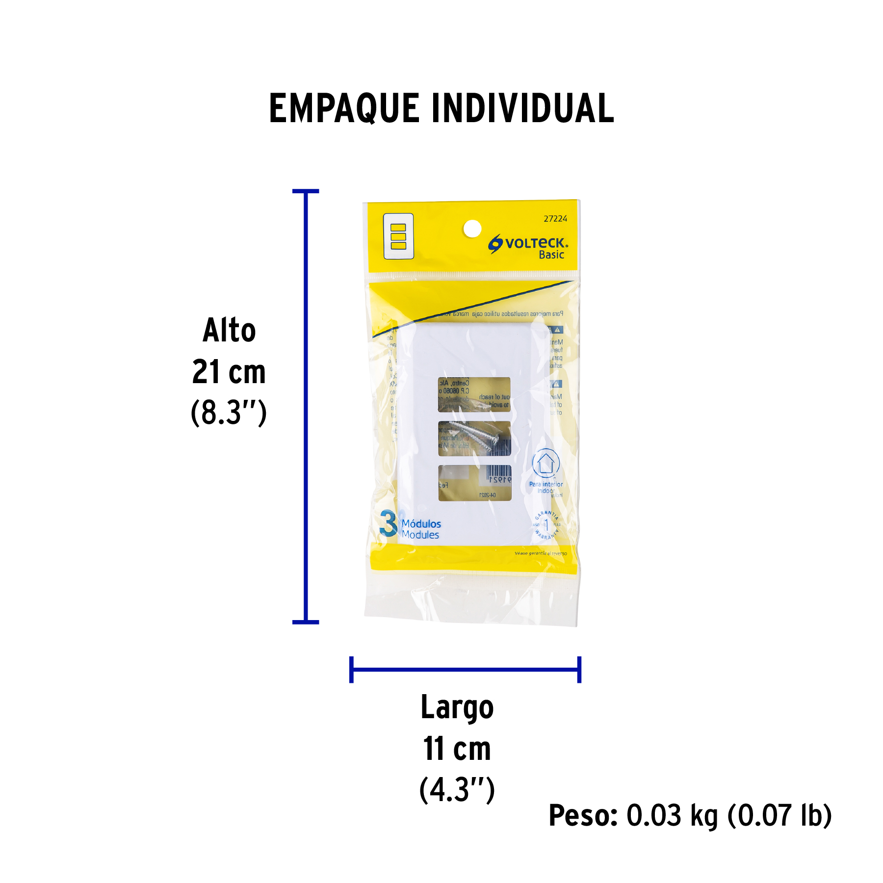 Placa 3 módulos de ABS, blanca, VOLTECK BASIC