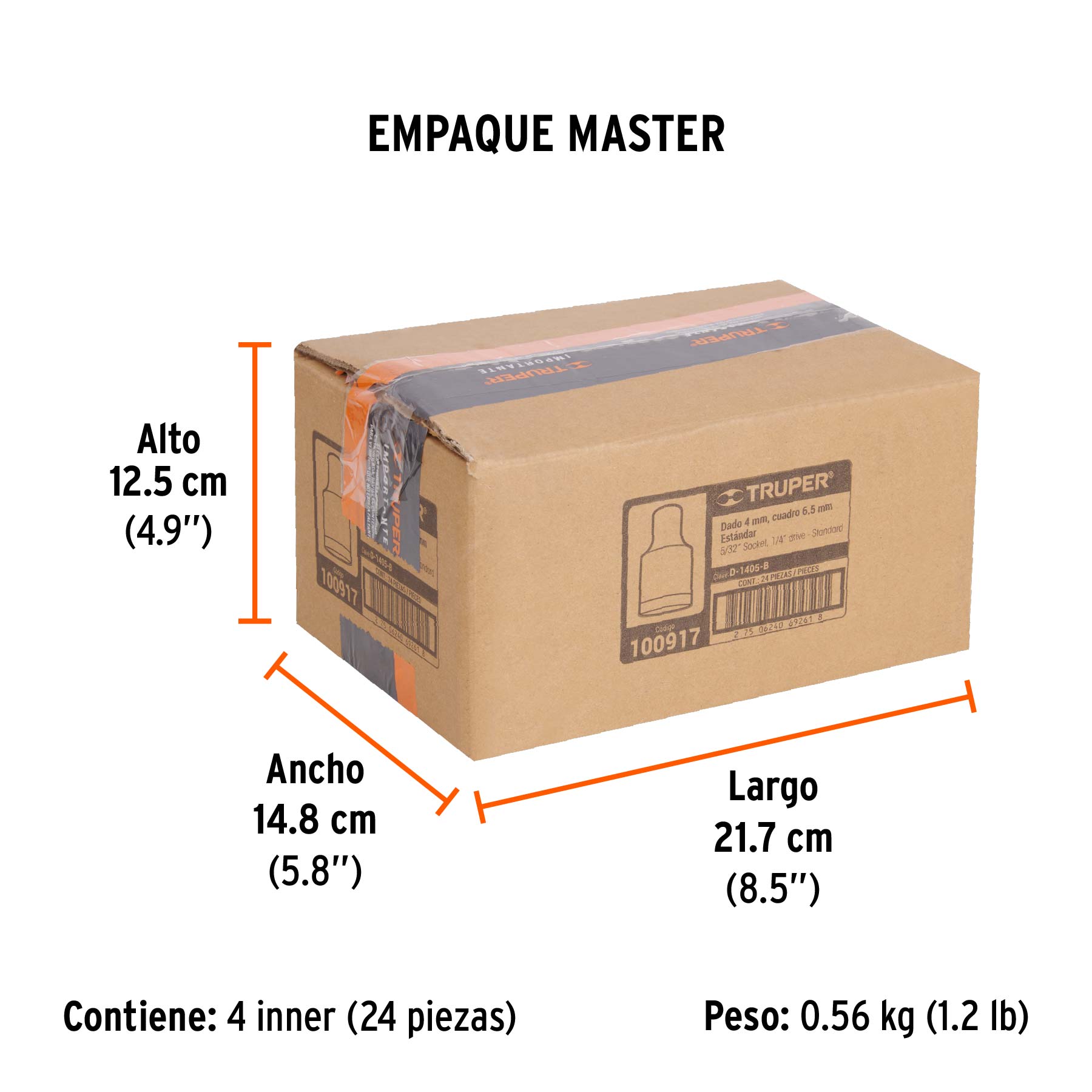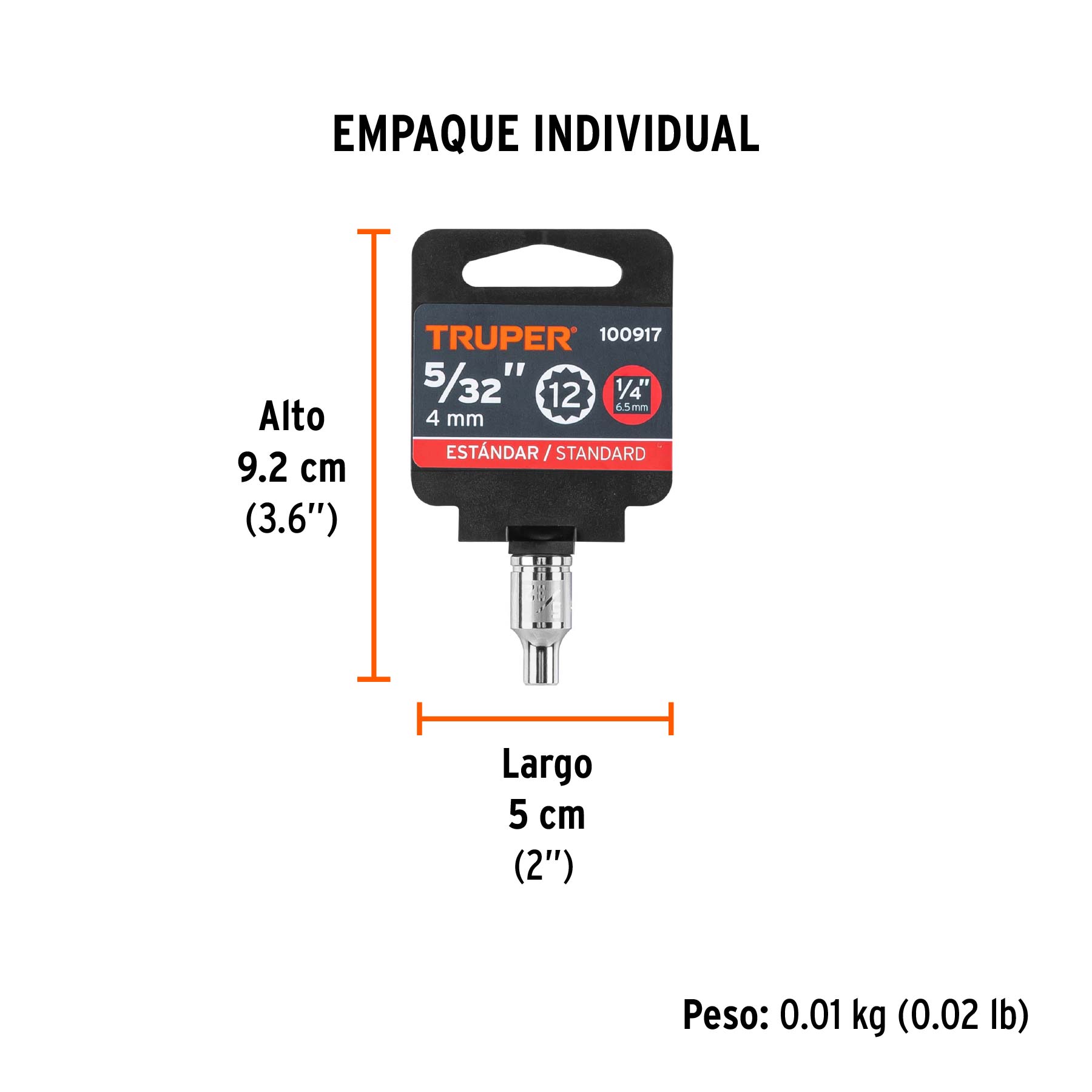 Dado de 5/32", 12 puntas, cuadro 1/4", Truper