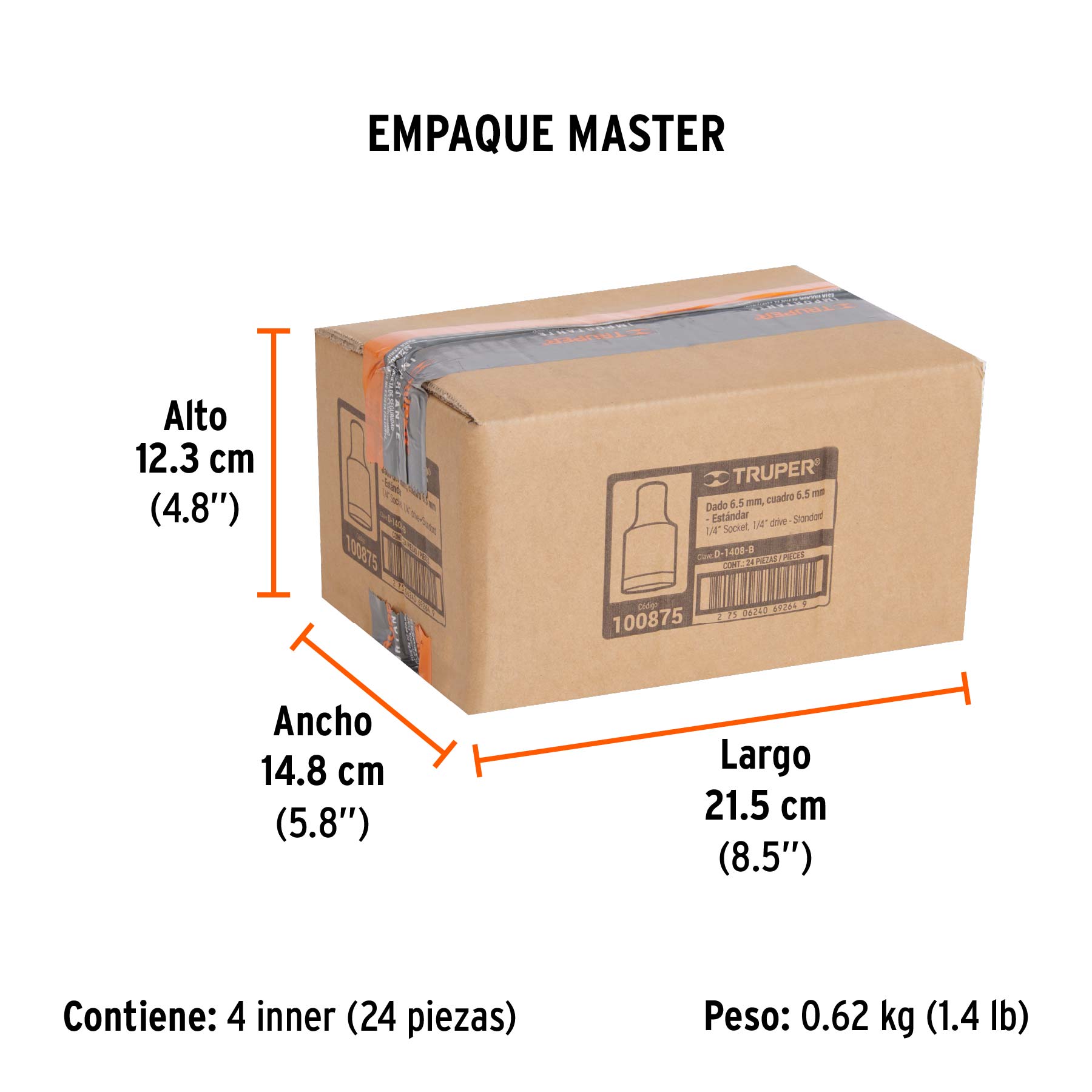 Dado de 1/4", 12 puntas, cuadro 1/4", Truper