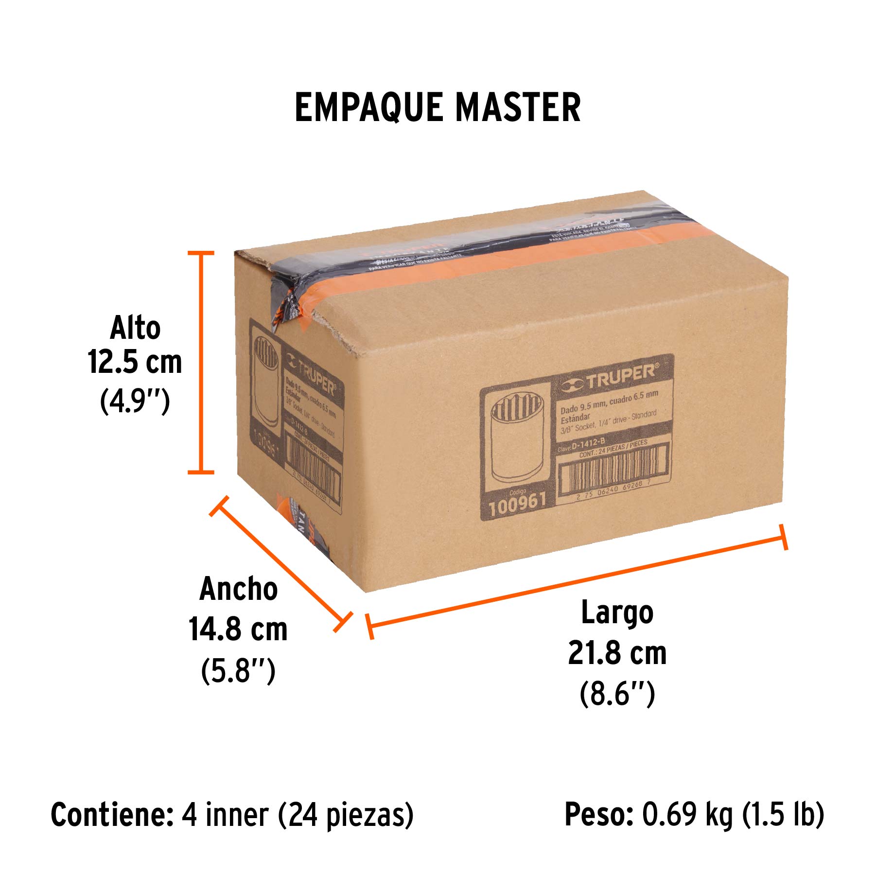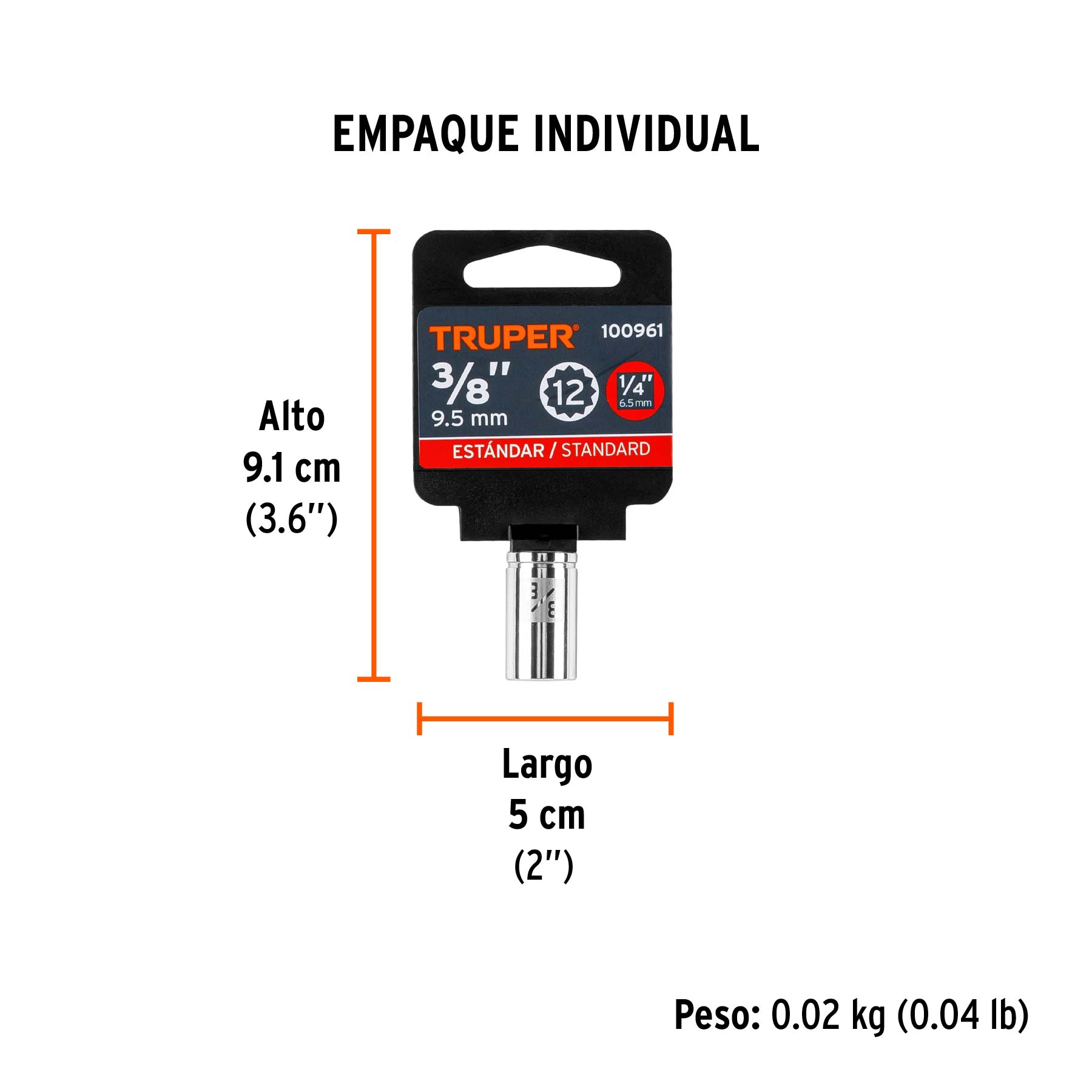 Dado de 3/8", 12 puntas, cuadro 1/4", Truper