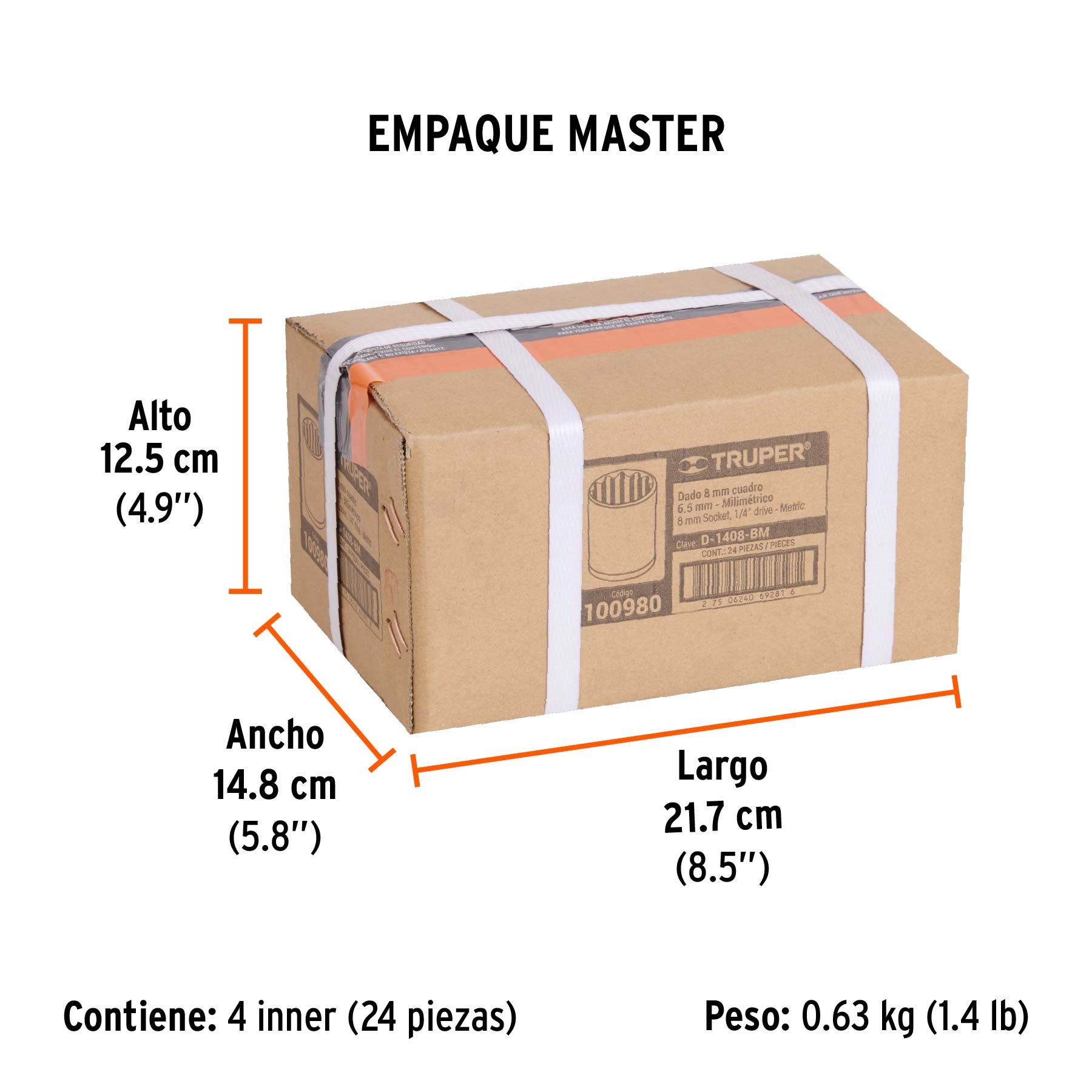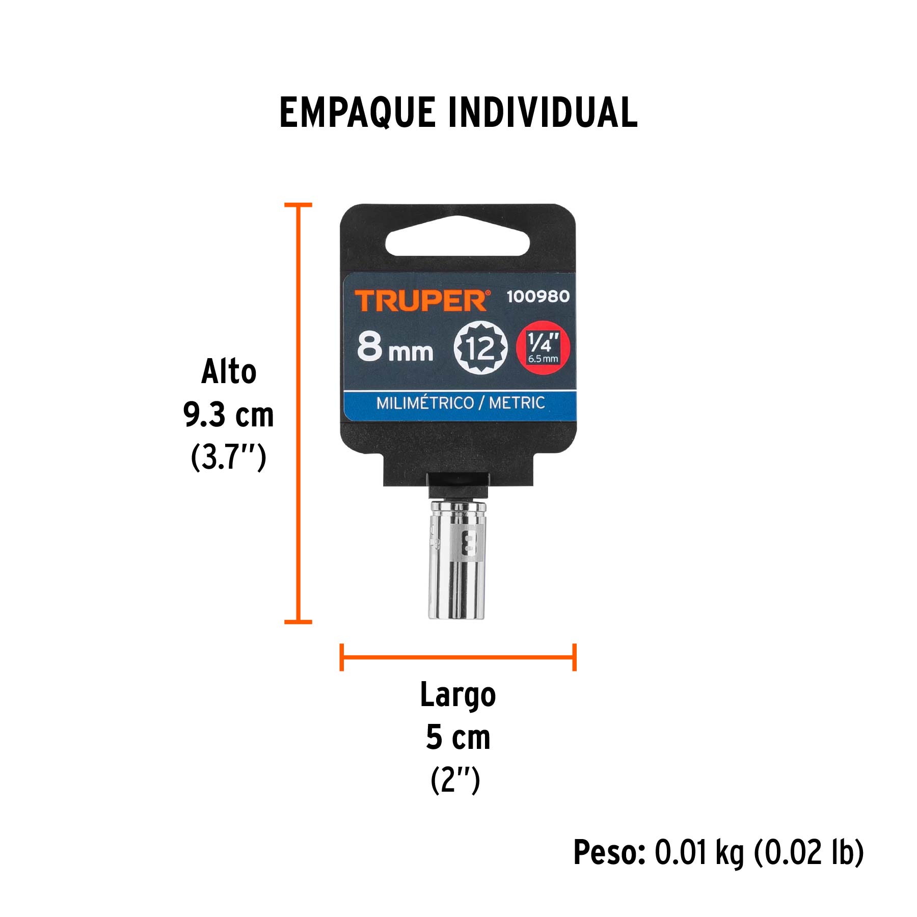Dado de 8 mm, 12 puntas, cuadro 1/4", Truper