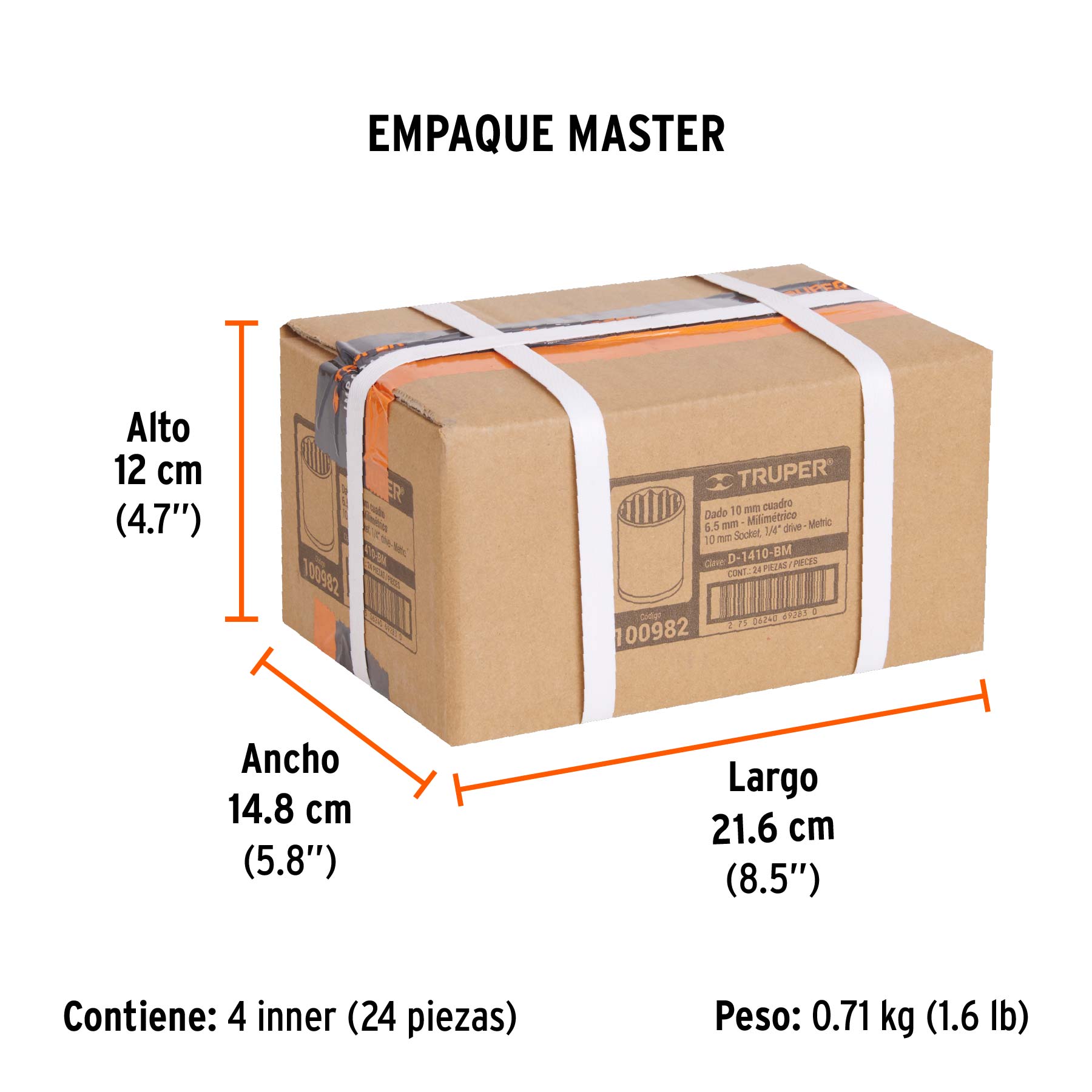 Dado de 10 mm, 12 puntas, cuadro 1/4", Truper