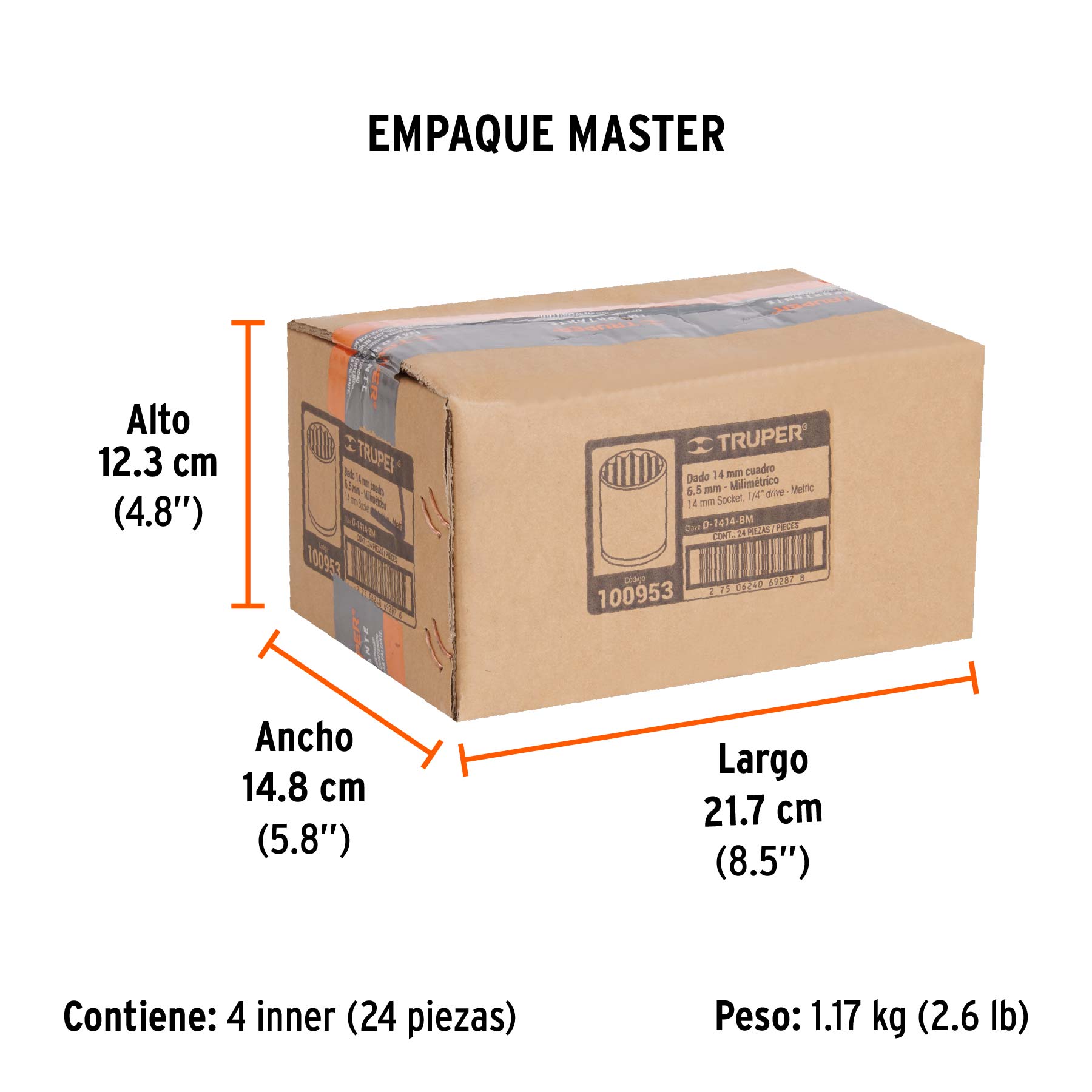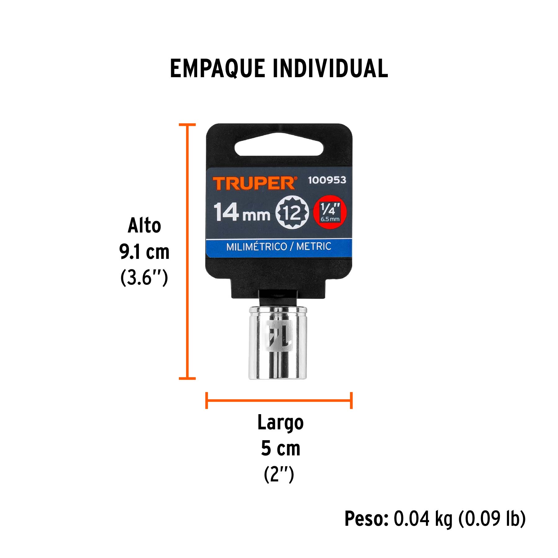 Dado de 14 mm, 12 puntas, cuadro 1/4", Truper