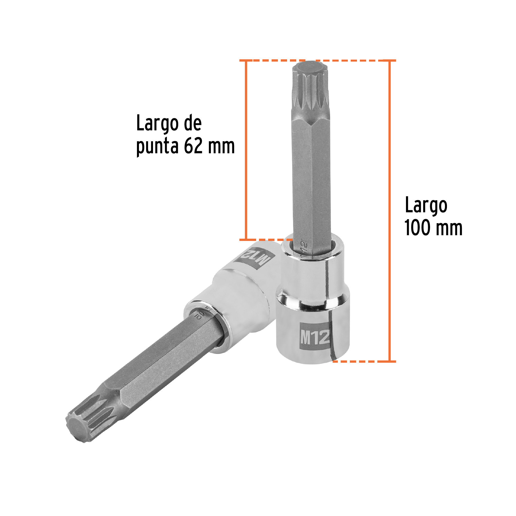 Dado punta larga bristol M12, cuadro 1/2", Truper
