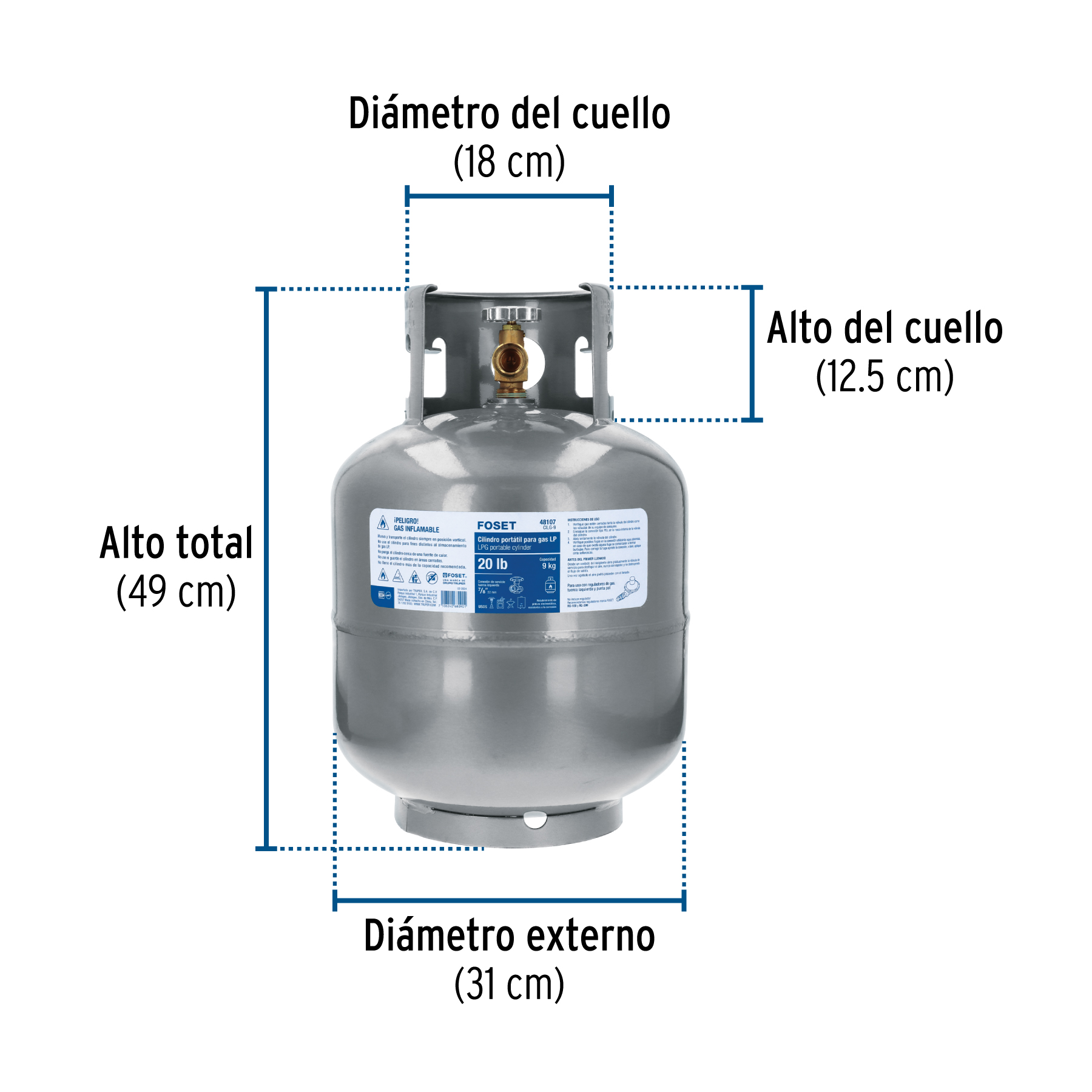 Cilindro portátil para gas LP, 20lb (9kg) FOSET