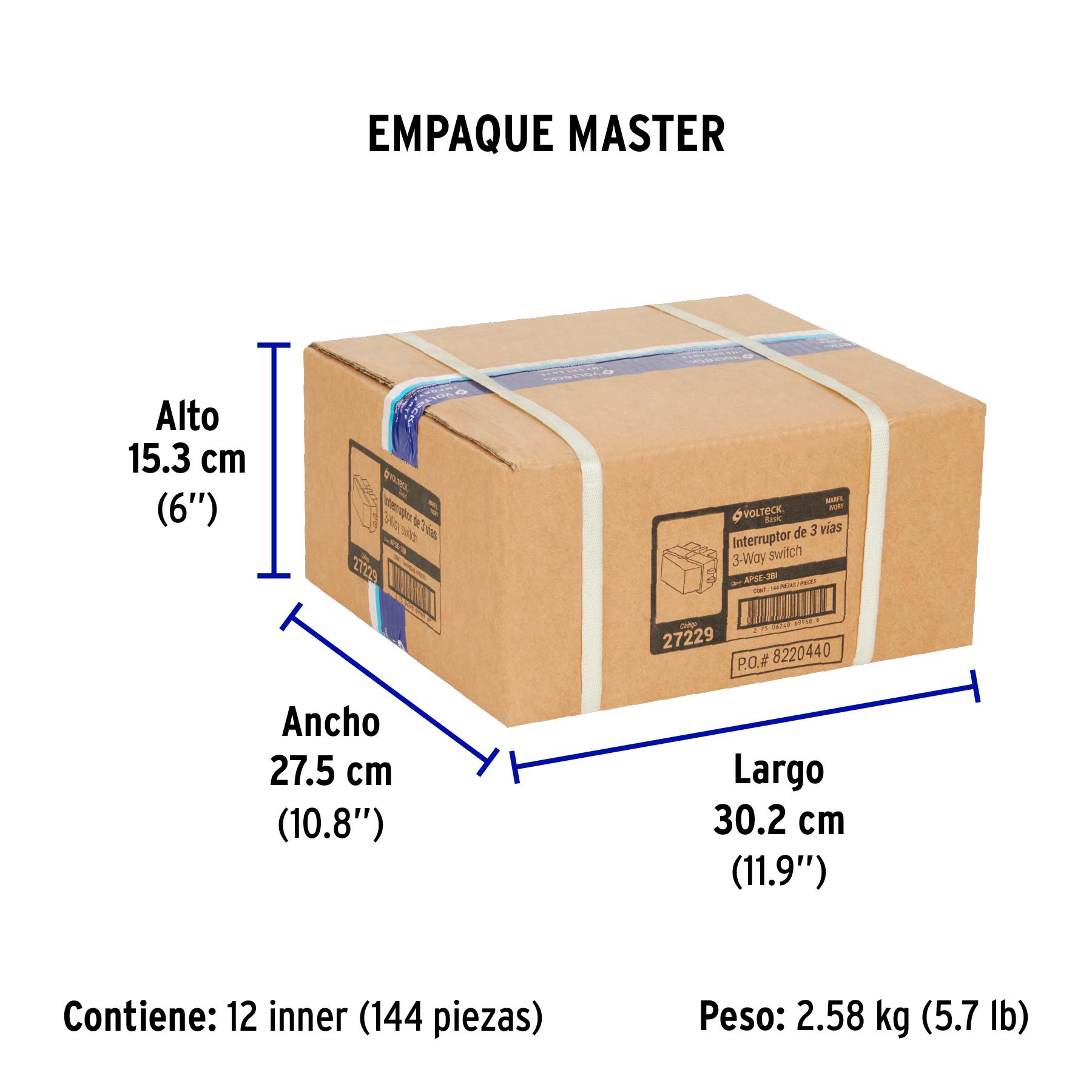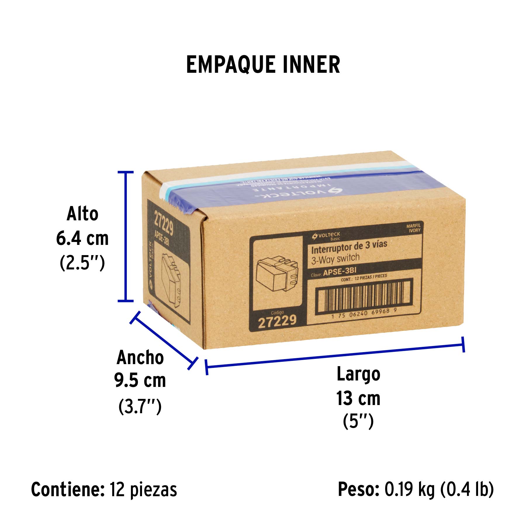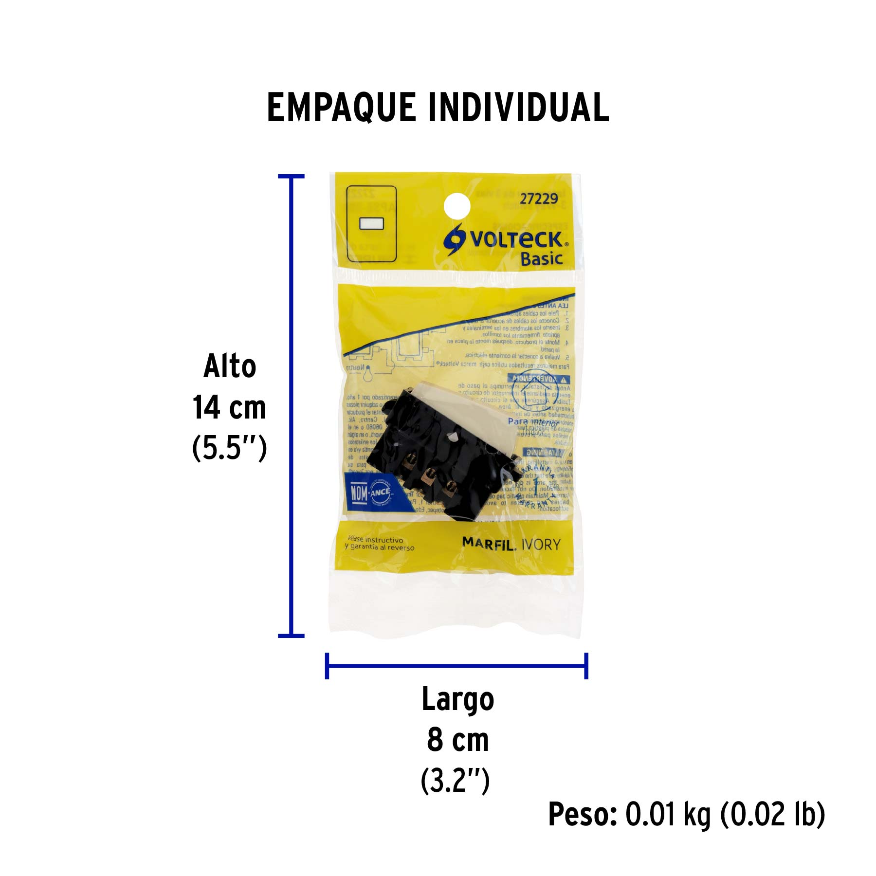Interruptor de 3 vías, marfil, línea VOLTECK BASIC