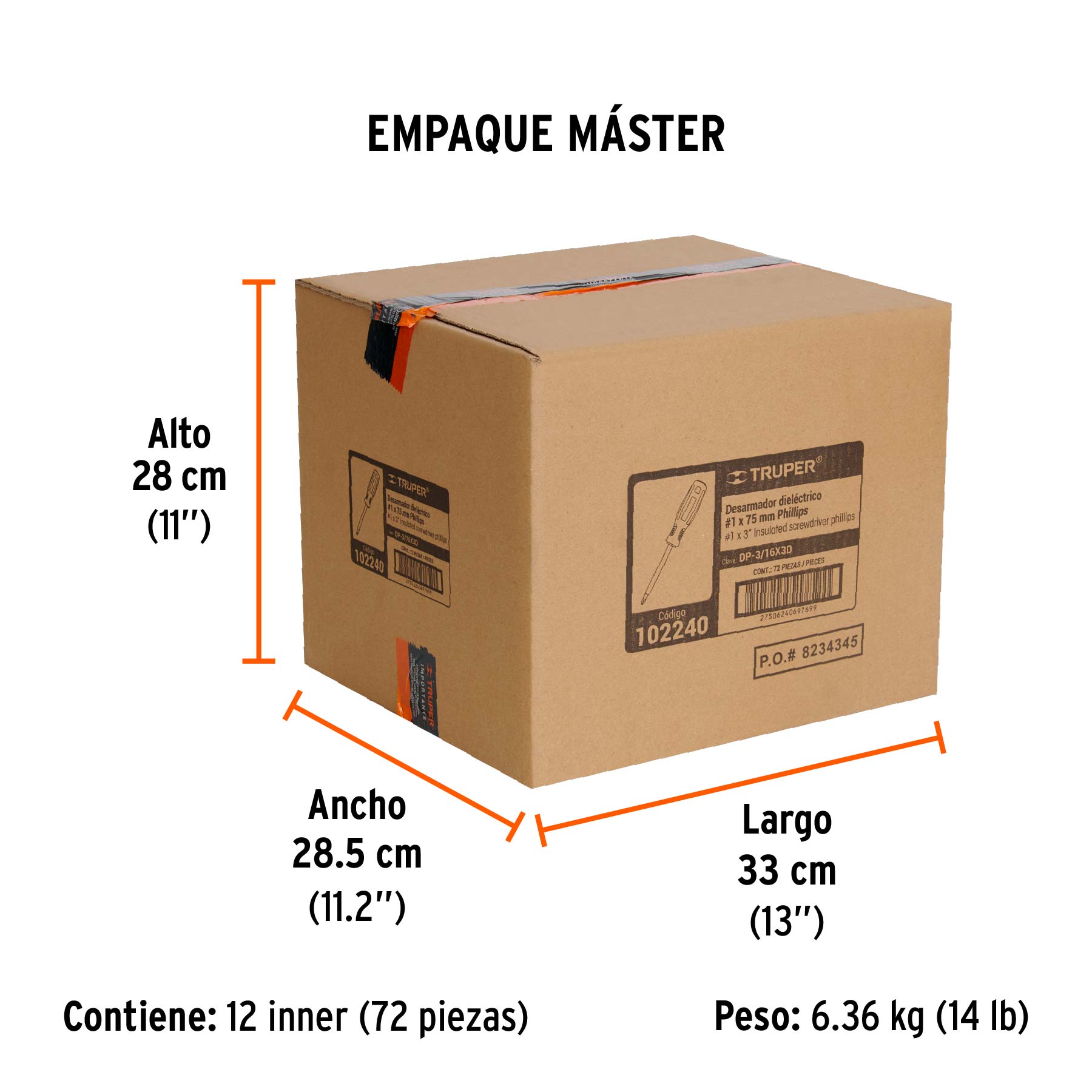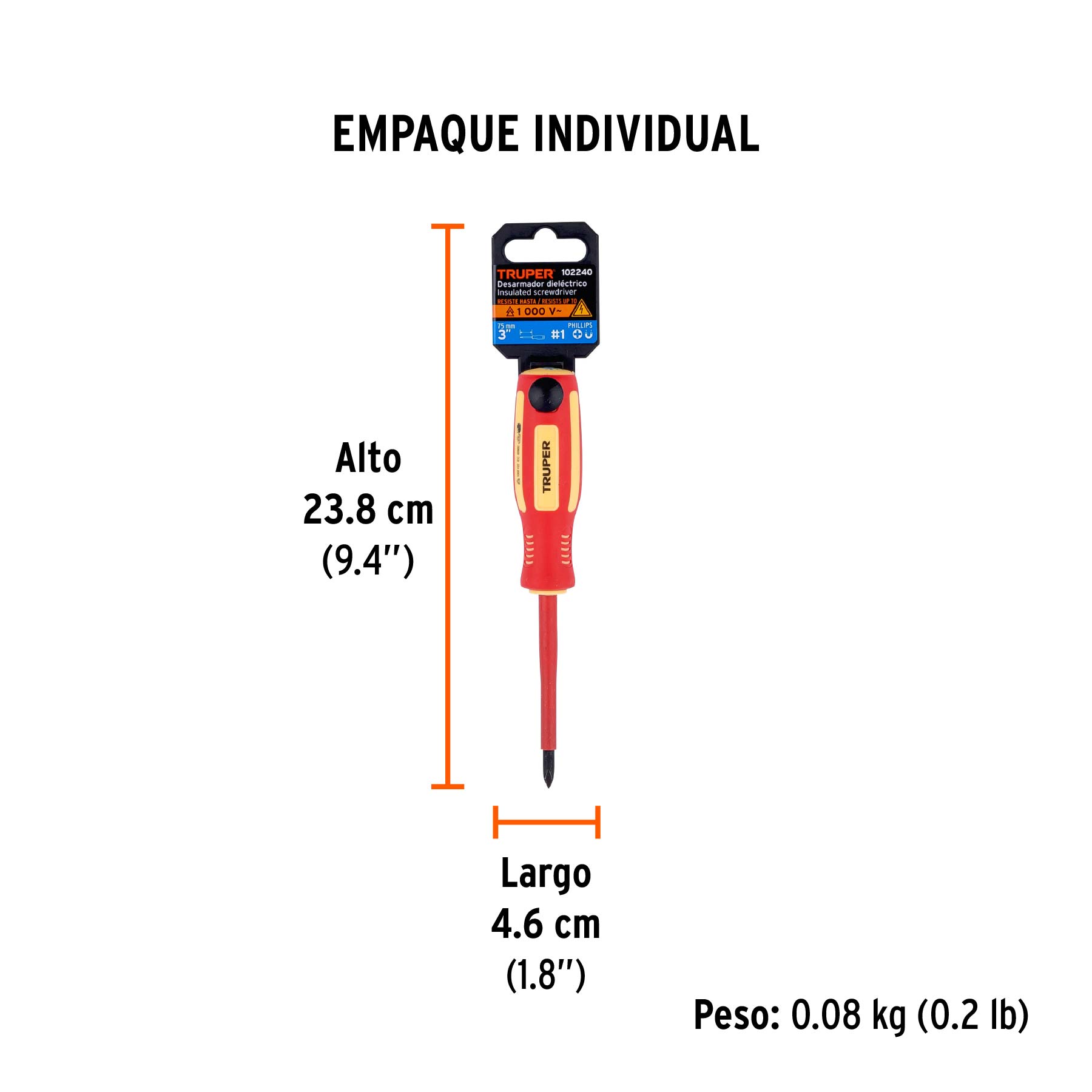 Desarmador dieléctrico de cruz 3/16" x 3", TRUPER