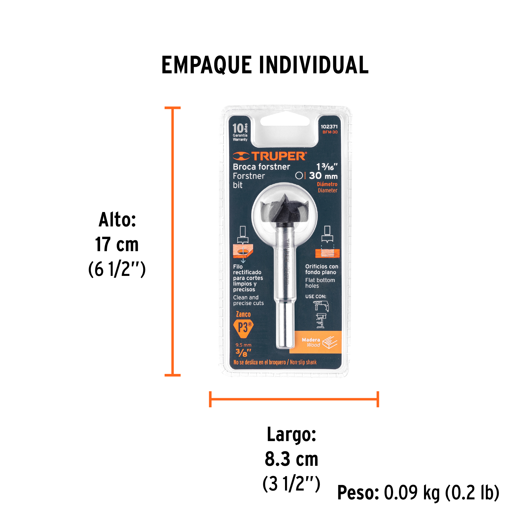 Broca forstner 30 mm para madera, TRUPER