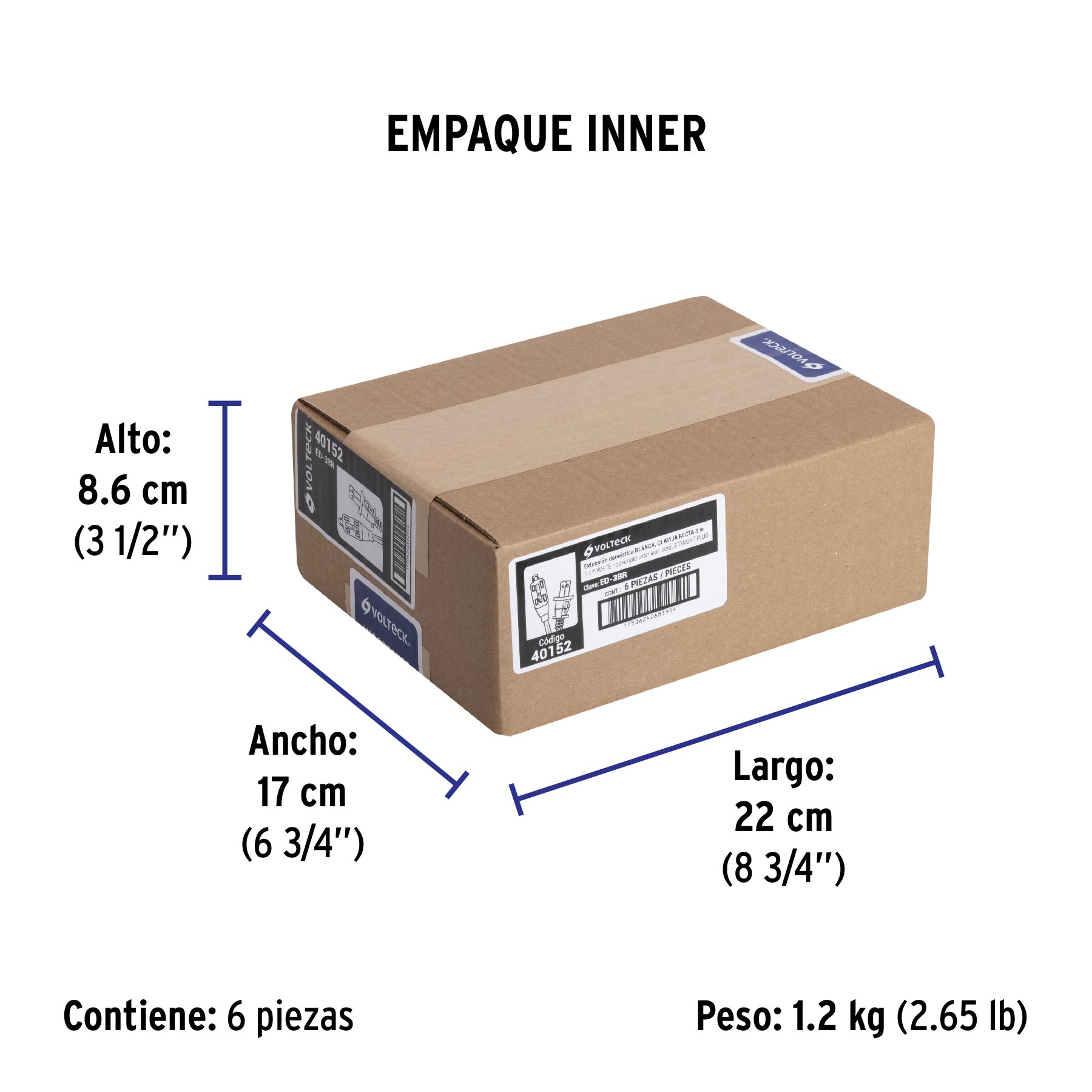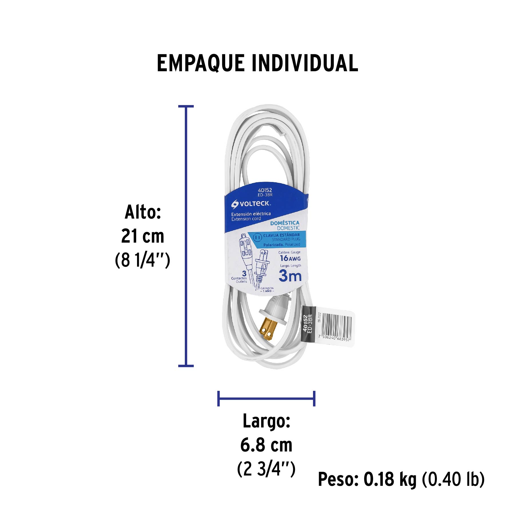 Extensión eléctrica doméstica 3 m clavija recta, blanca