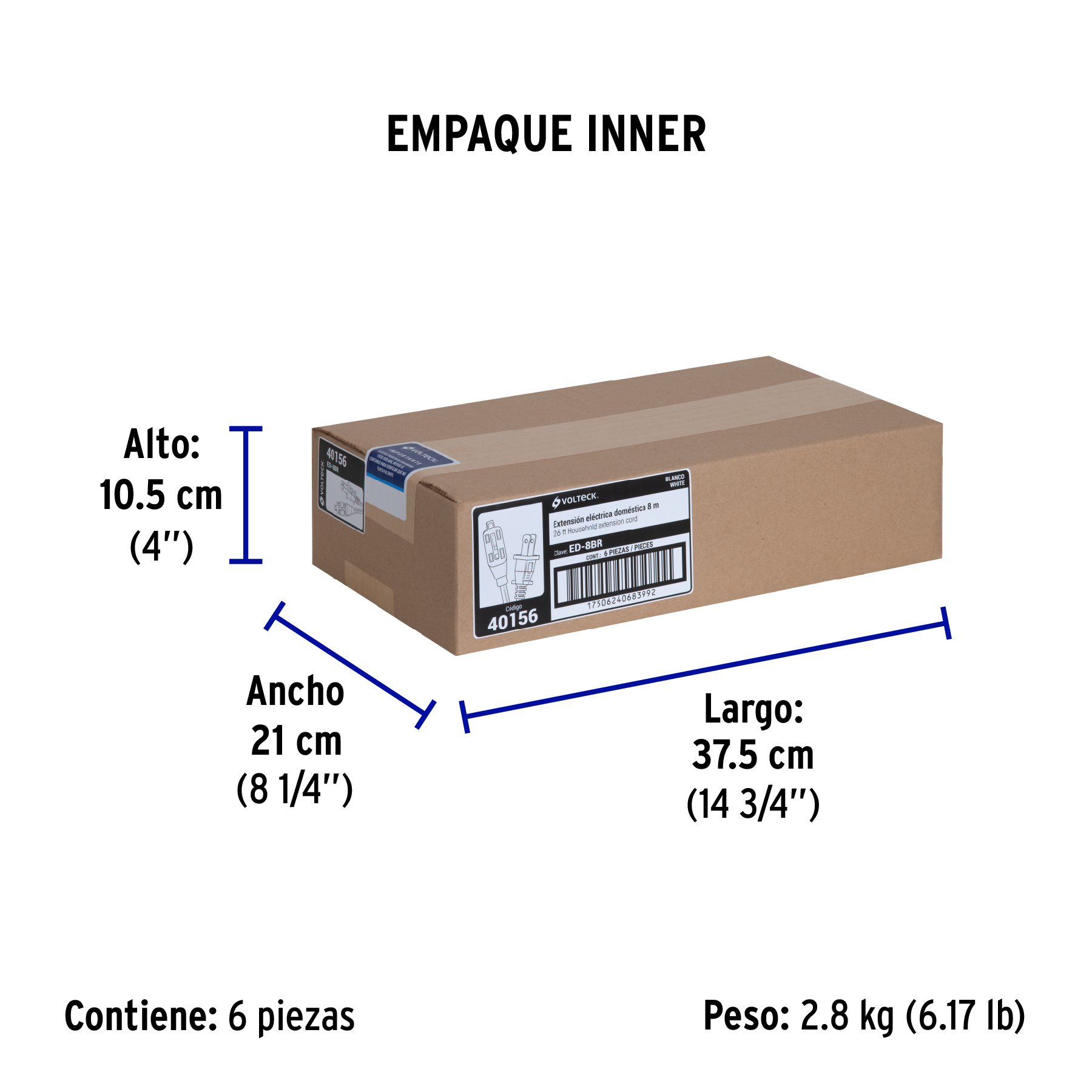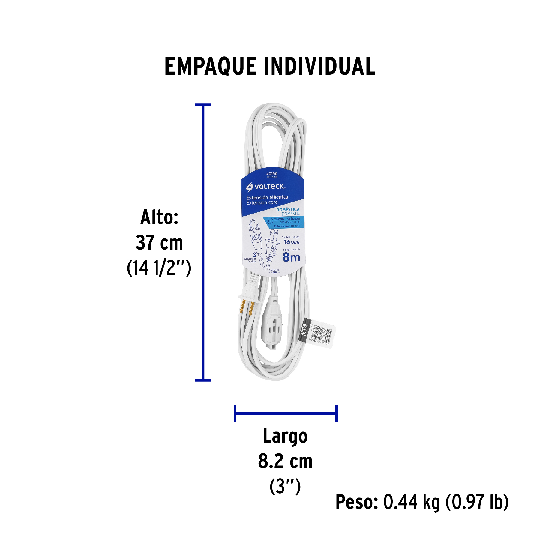Extensión eléctrica doméstica 8 m clavija recta, blanca