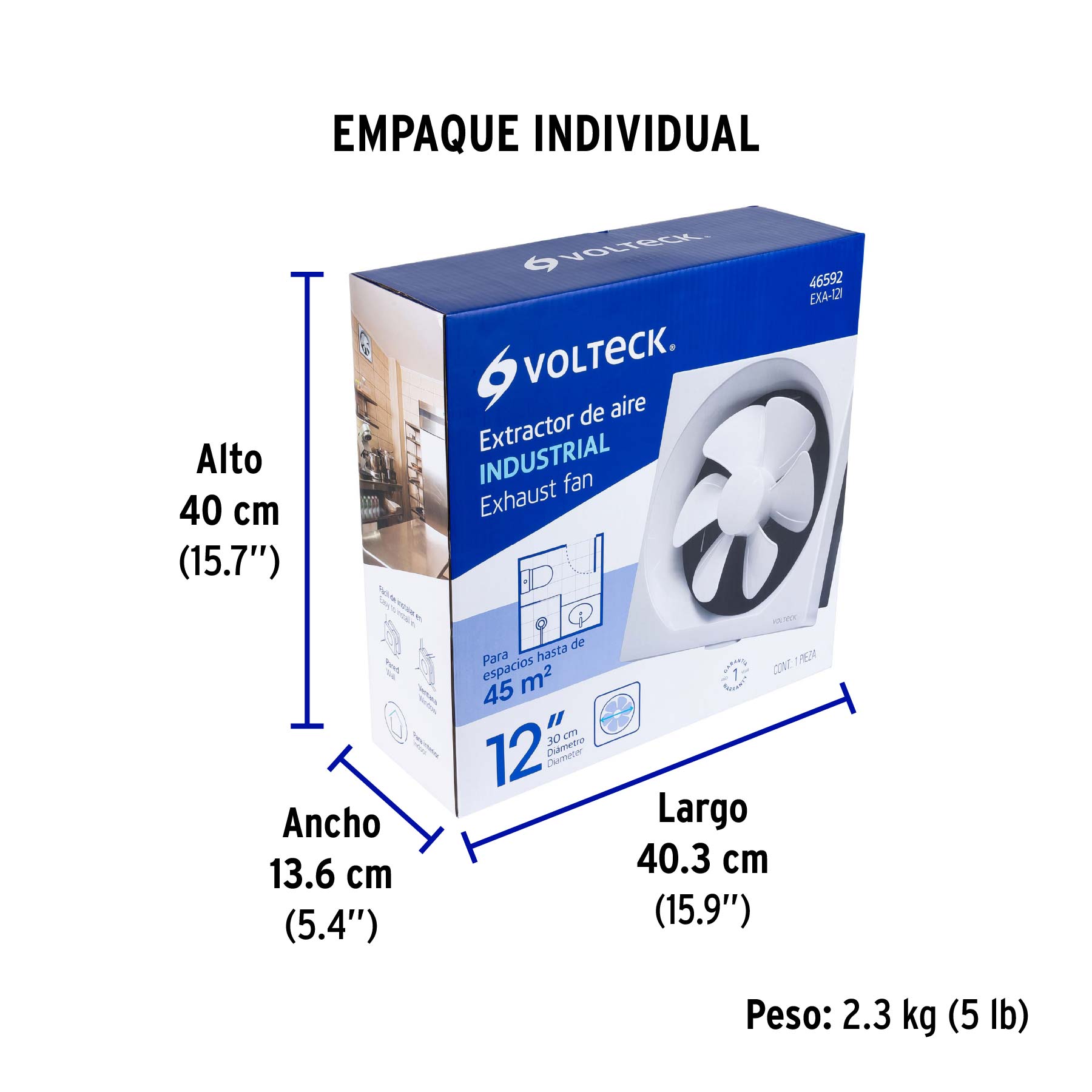 Extractor de aire de 12",blanco, VOLTECK