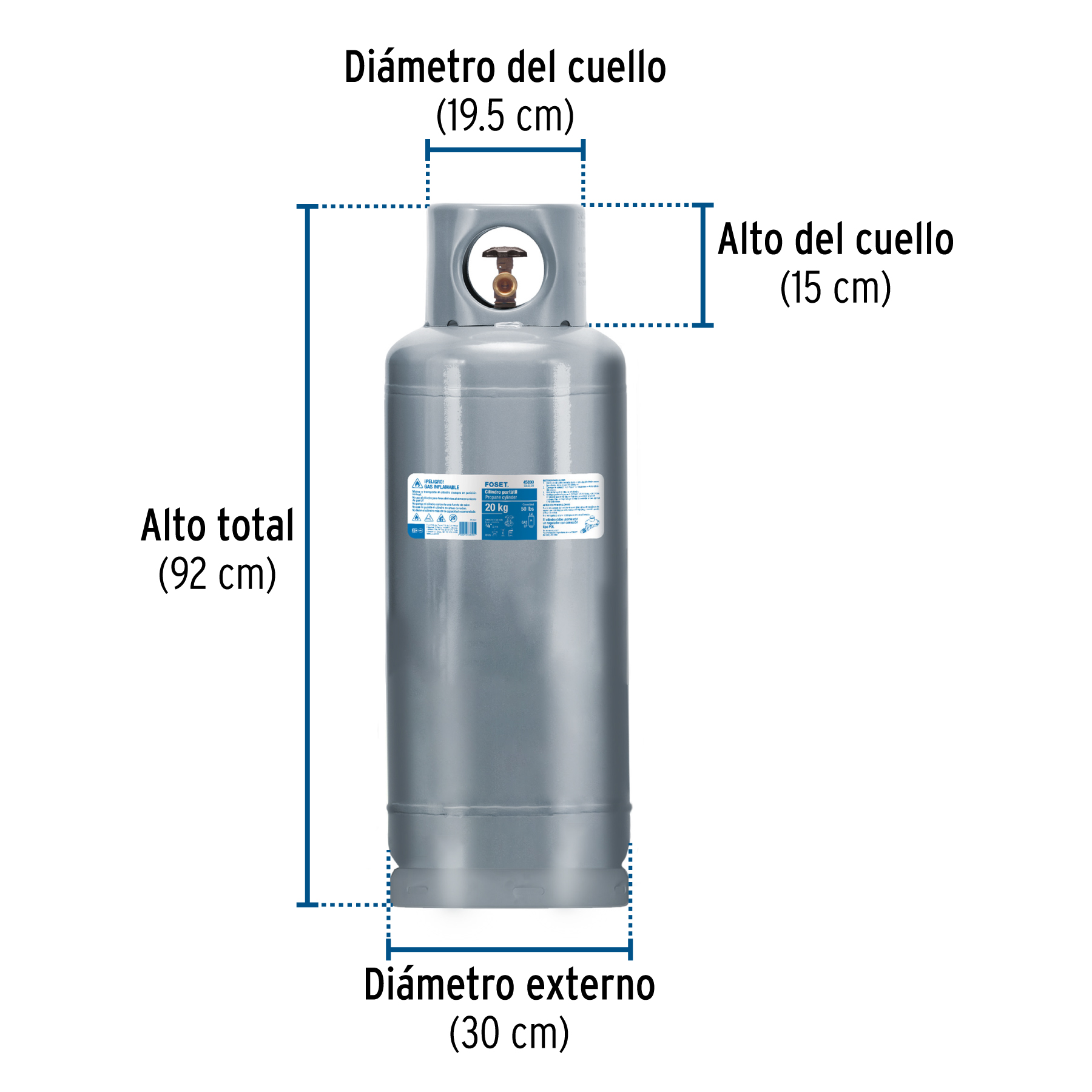 Cilindro portátil para gas LP, 20kg (44lb) FOSET