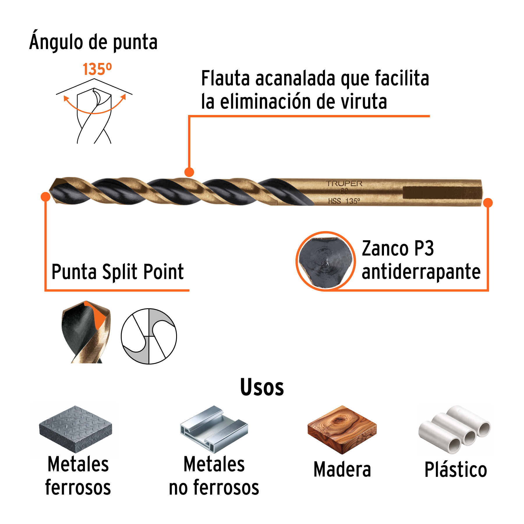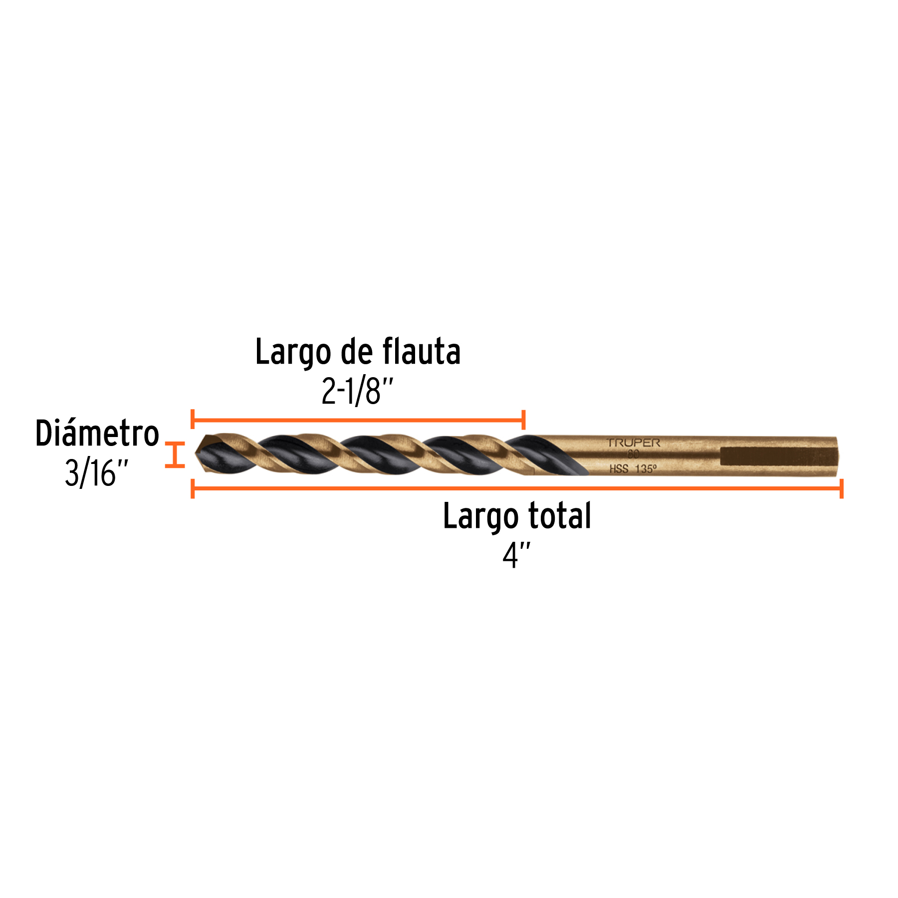 Broca HSS 3/16" Trugold para metal, TRUPER EXPERT