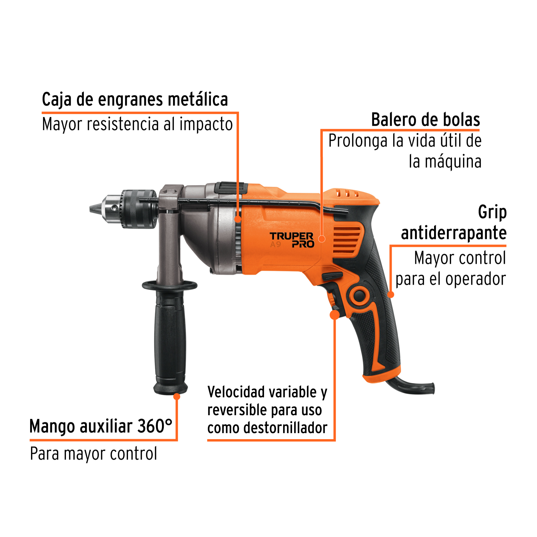Rotomartillo/destornillador 1/2", 850W, TRUPER PRO