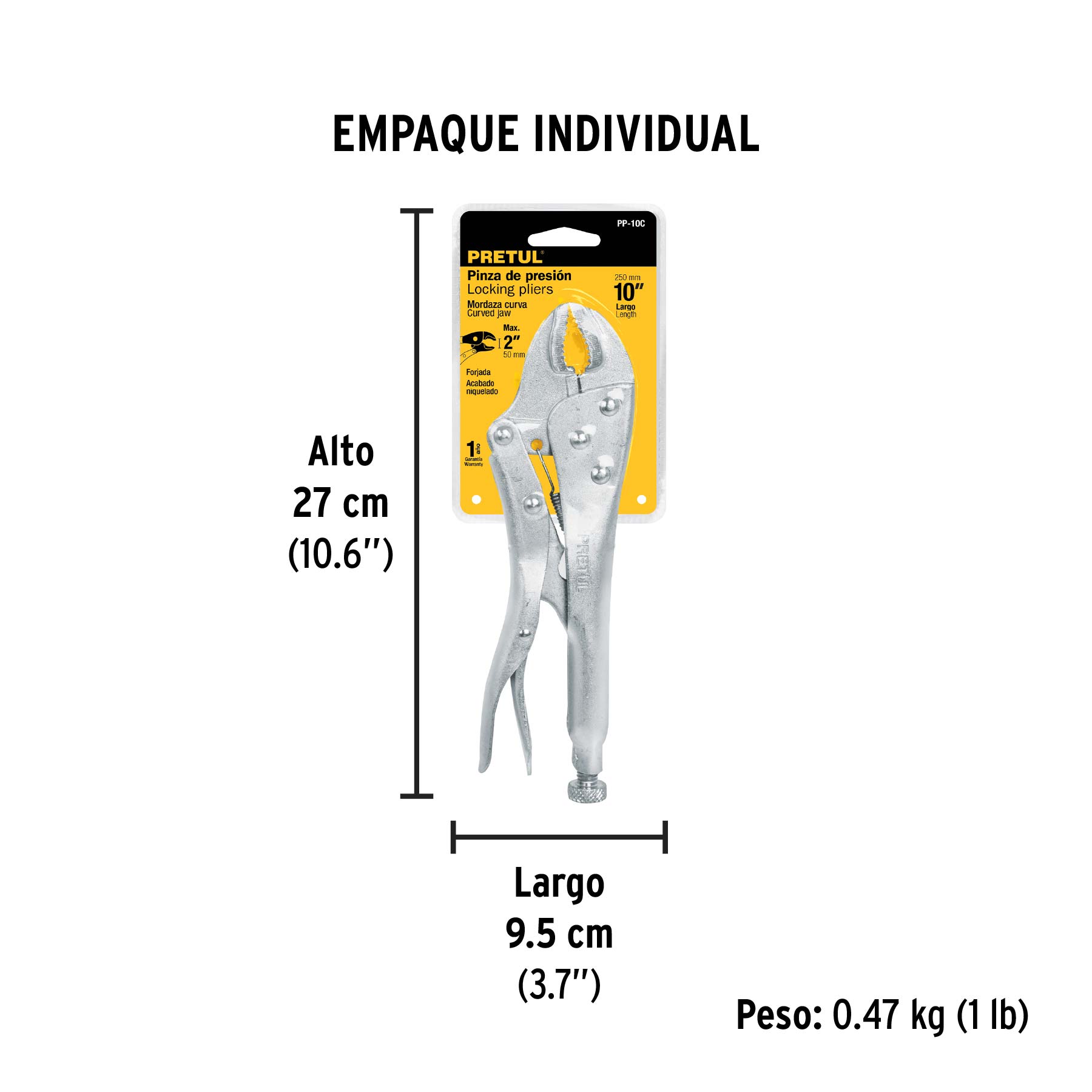 Pinza de presión 10" mordaza curva, PRETUL