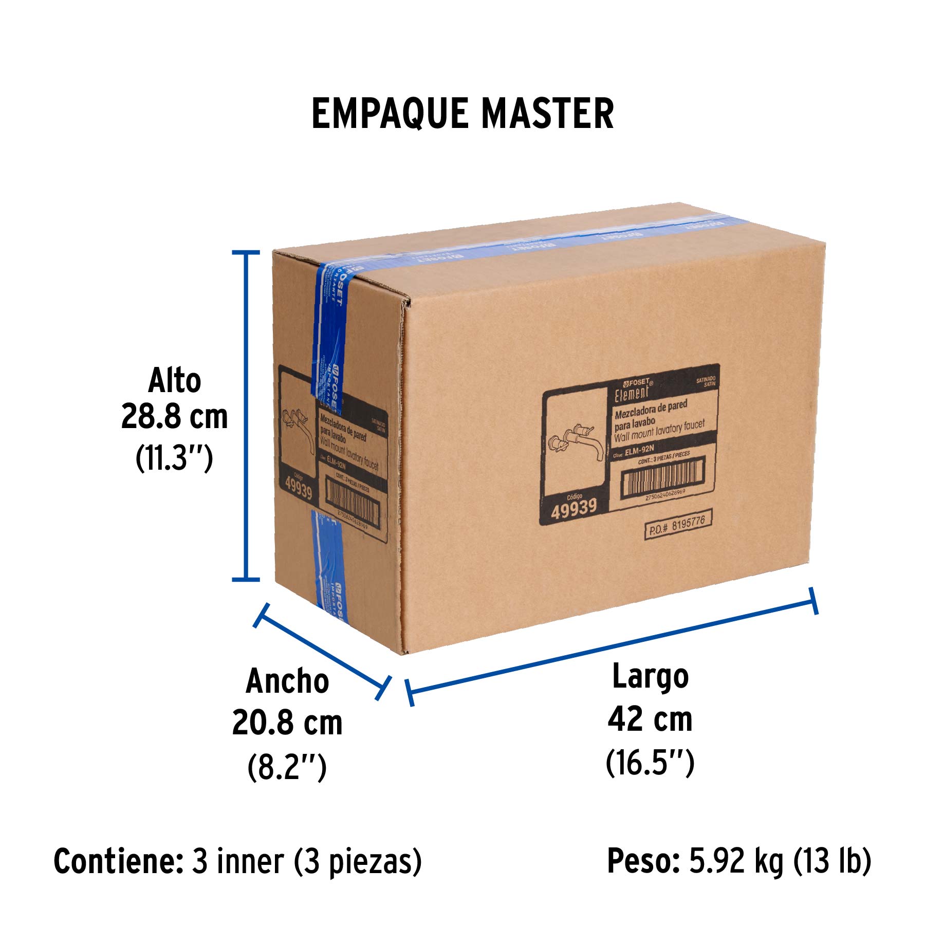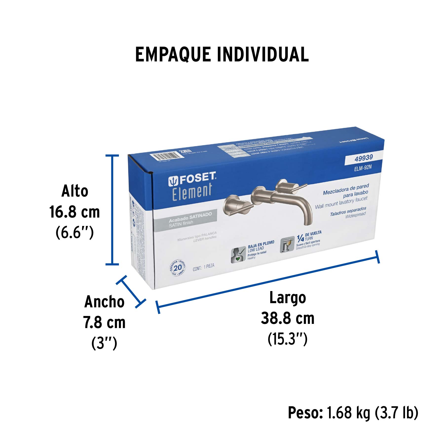 Mezcladora satín de pared para lavabo, FOSET ELEMENT