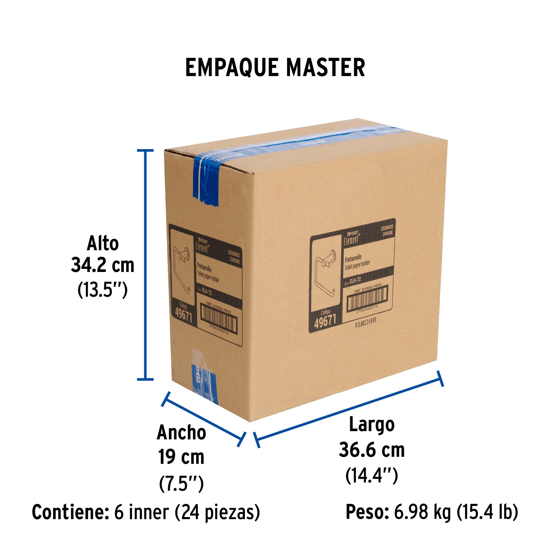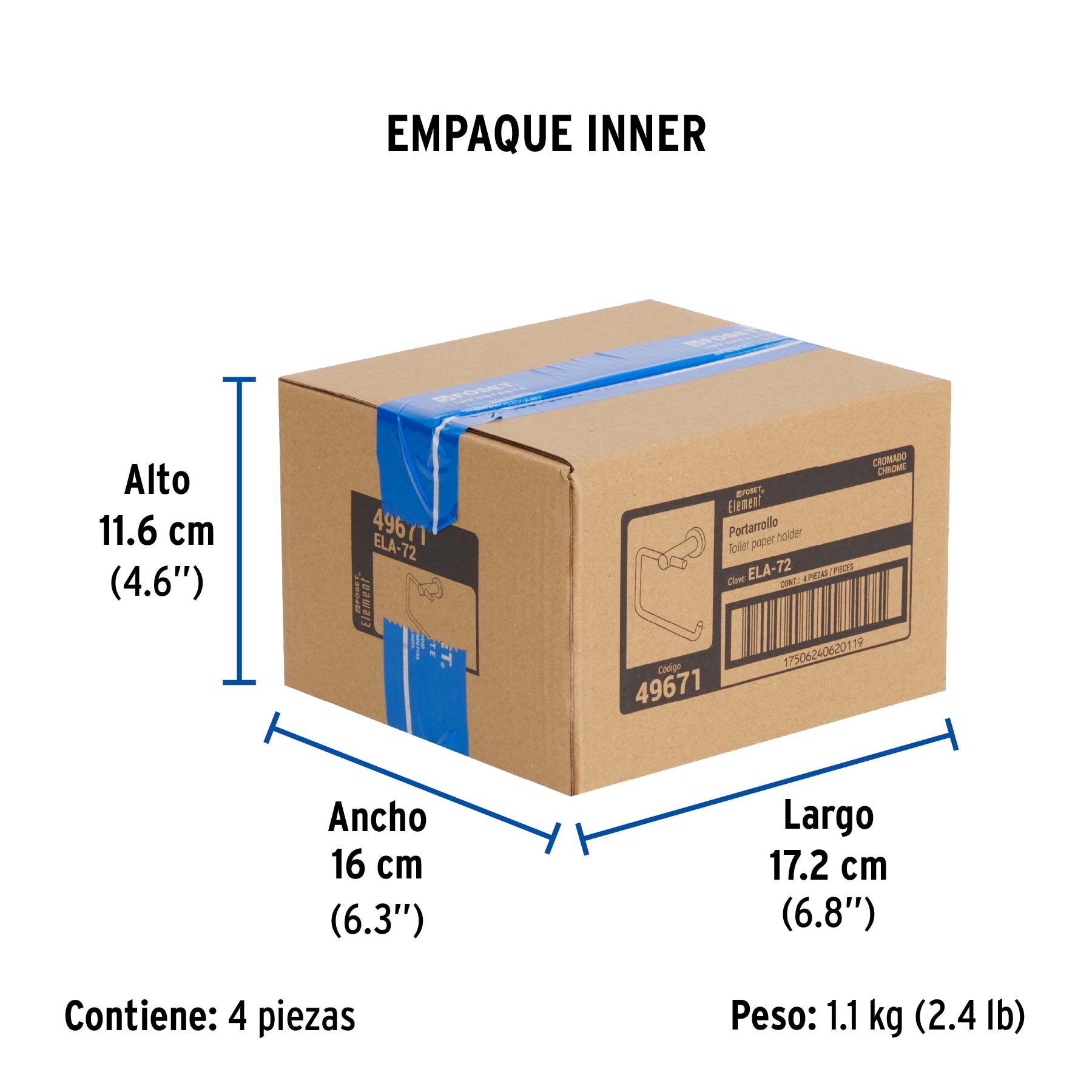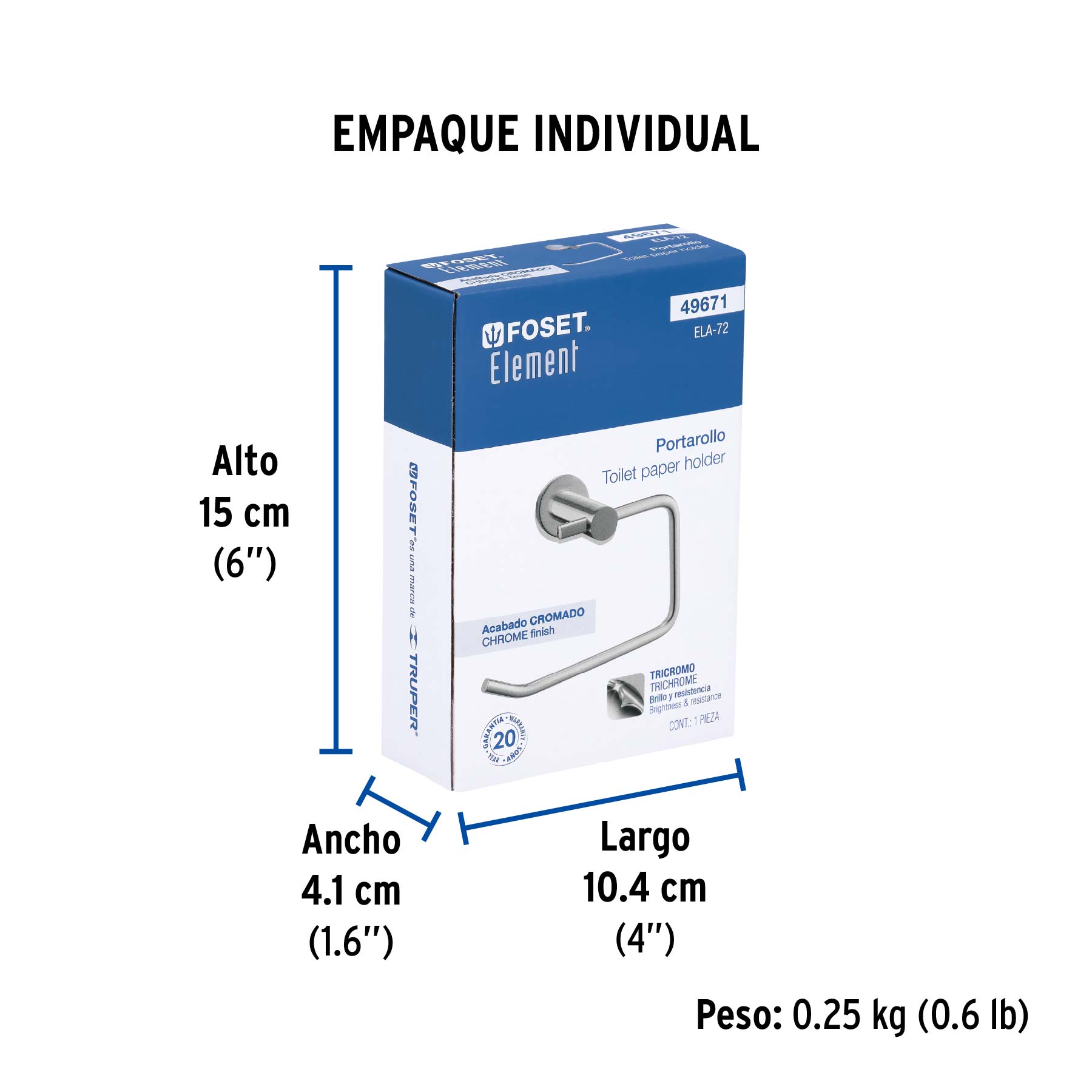 Portarrollo metálico acabado cromo, FOSET ELEMENT
