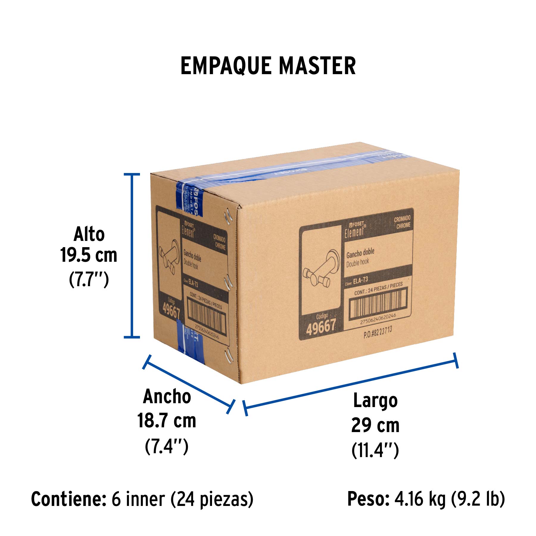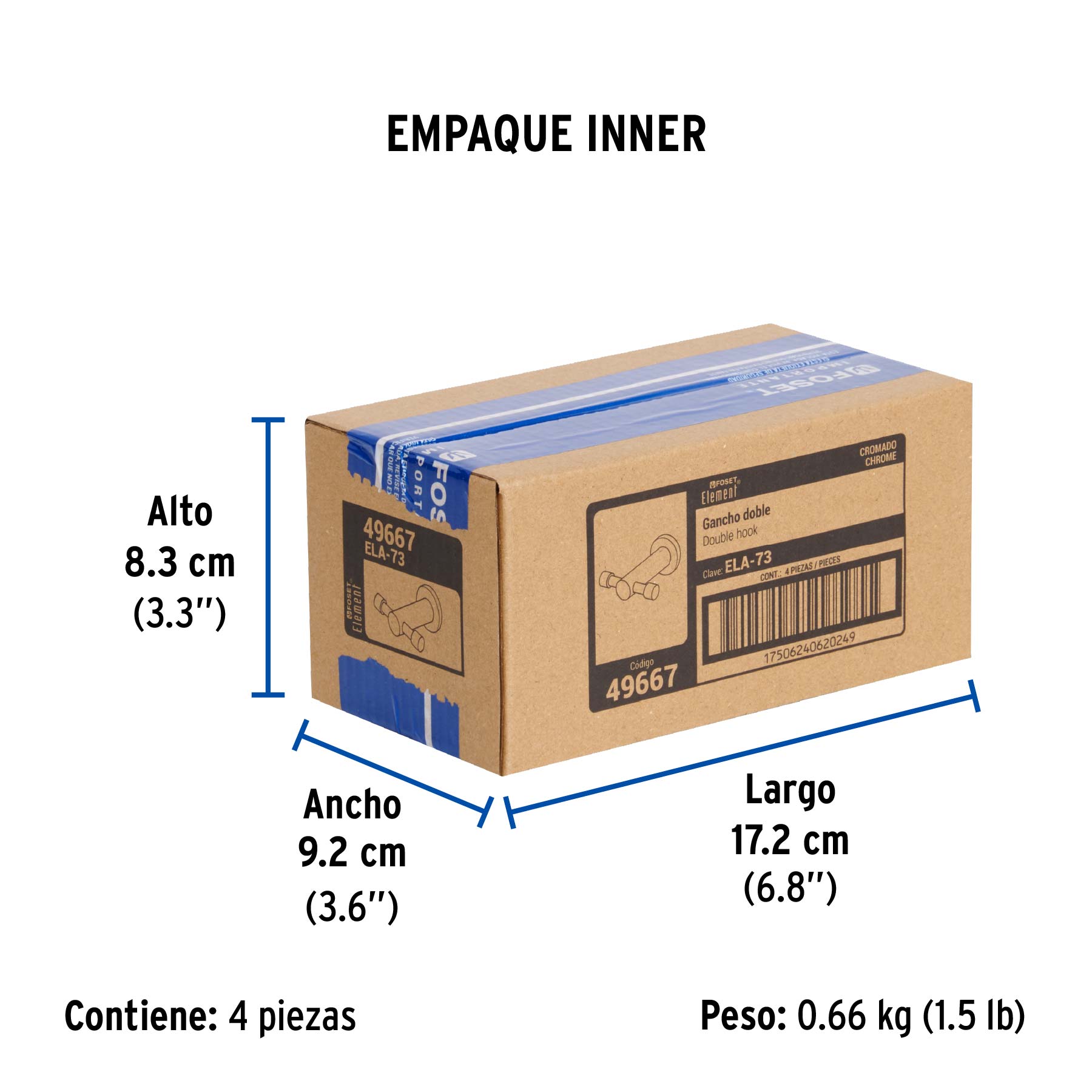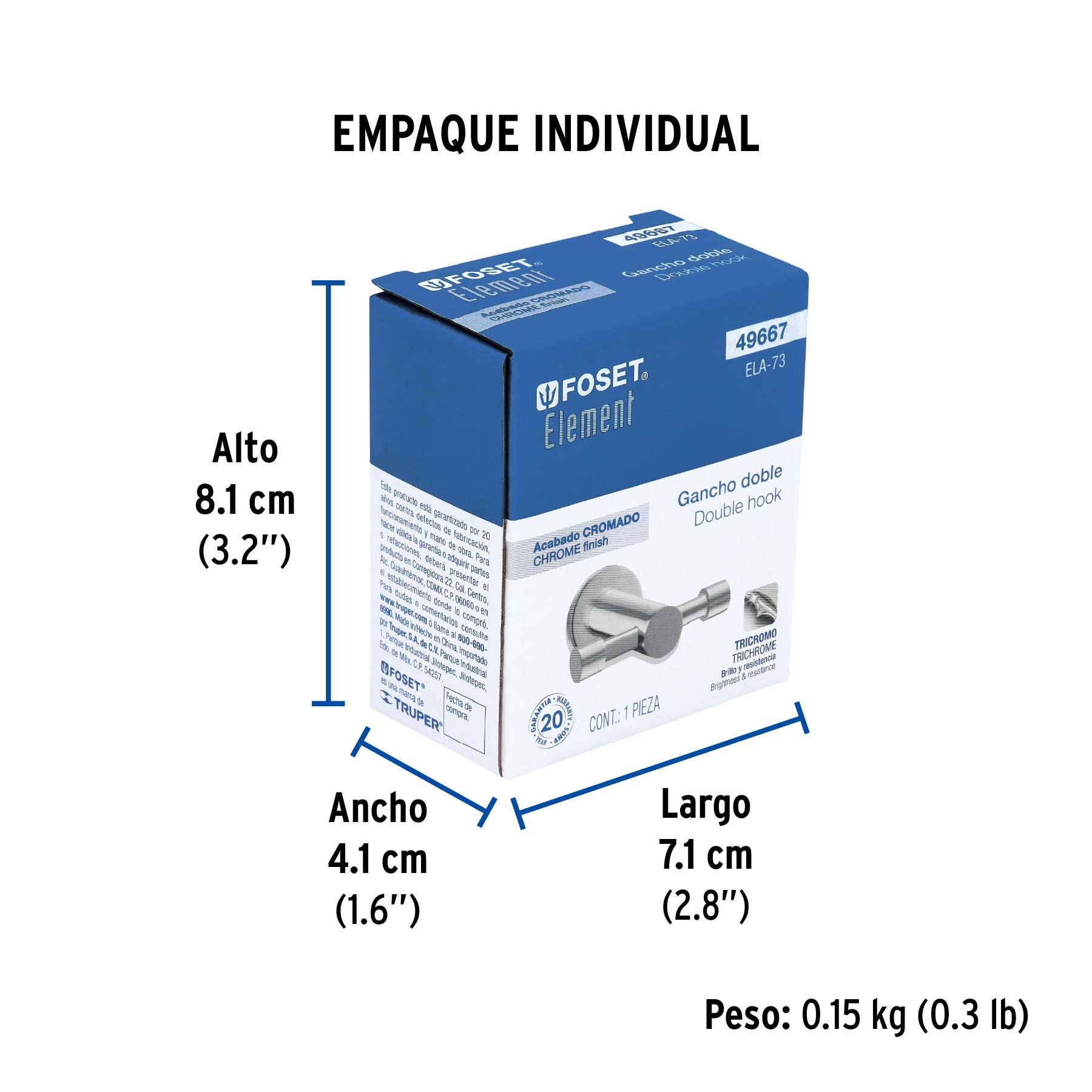 Gancho doble metálico cromo para toallas, FOSET ELEMENT