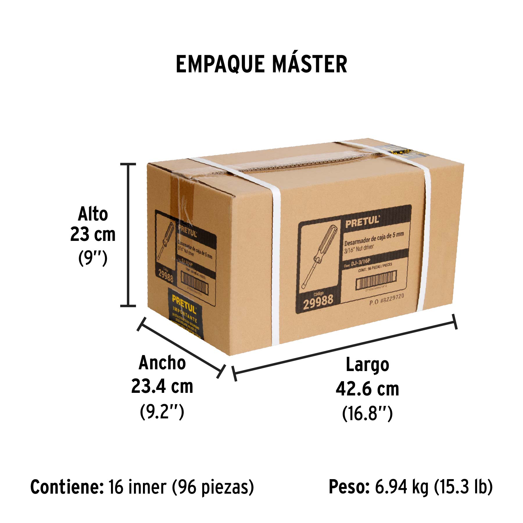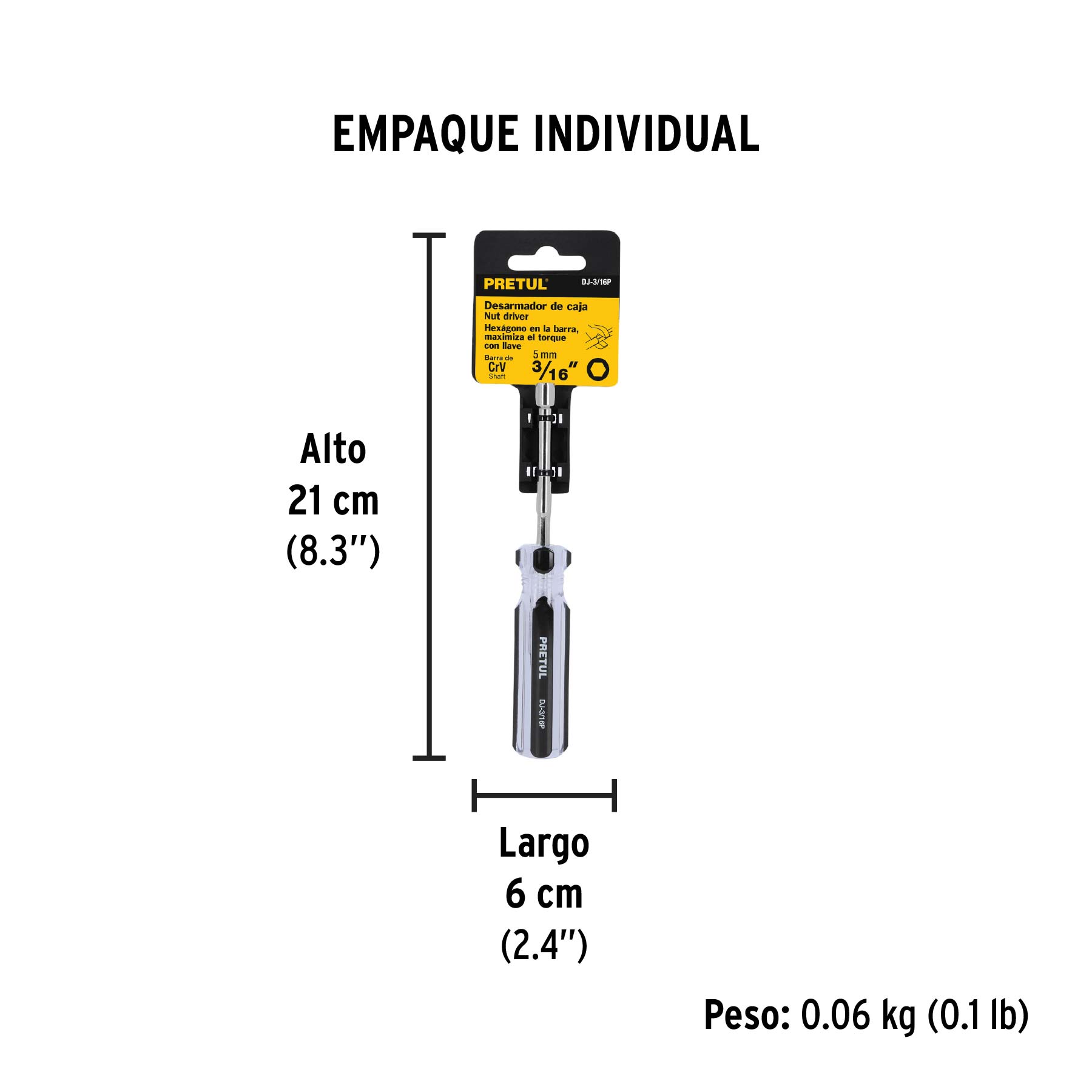 Desarmador de caja 3/16" mango de PVC, PRETUL