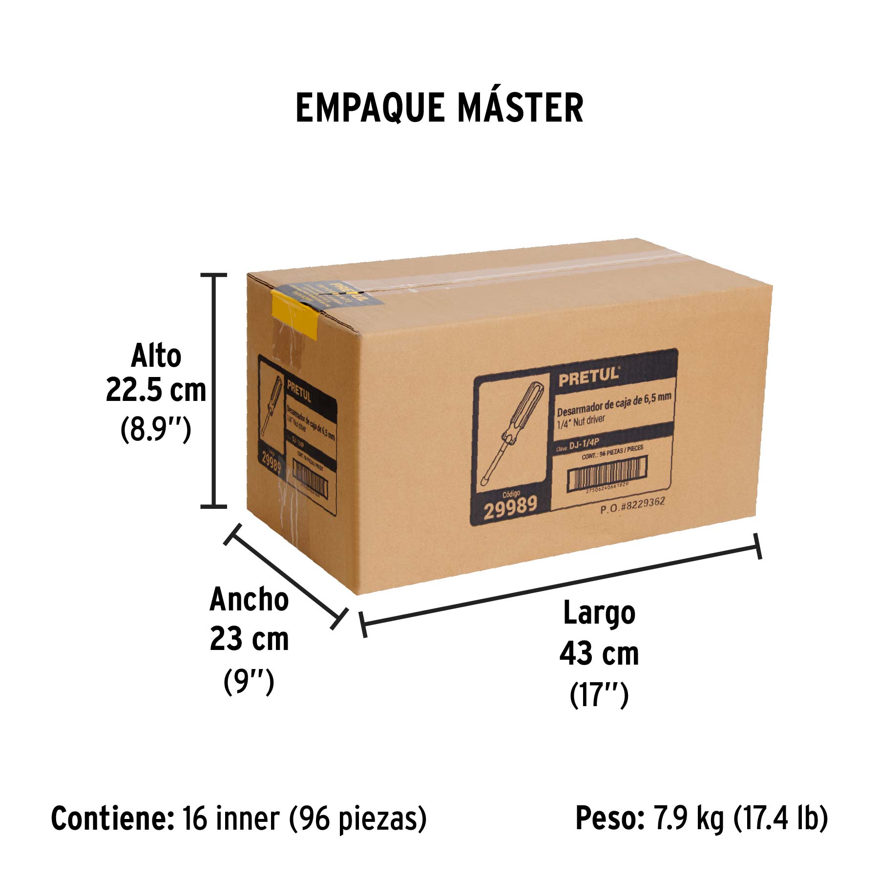 Desarmador de caja 1/4" mango de PVC, PRETUL