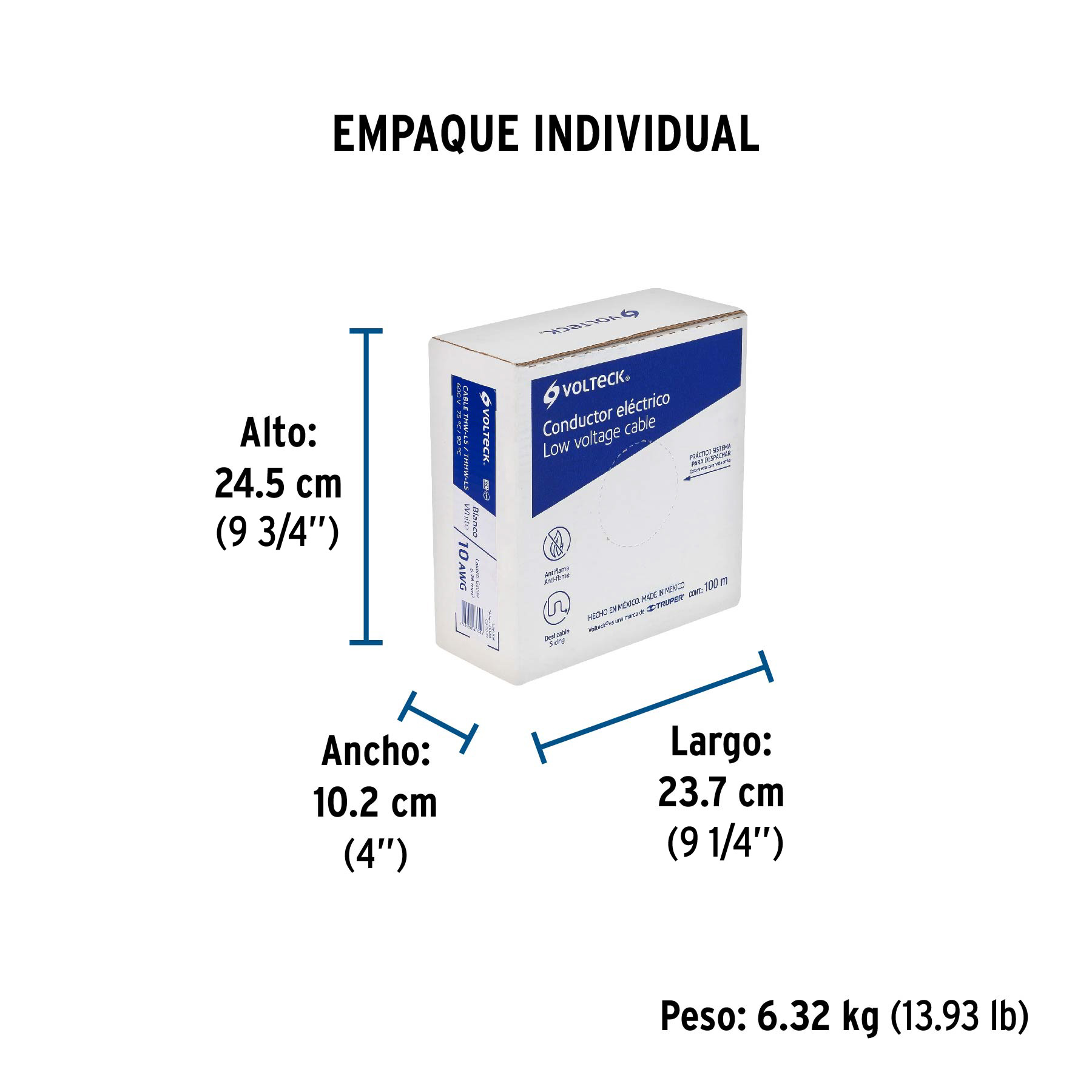 Rollo de 100 m de cable THHW-LS 10 AWG blanco, VOLTECK