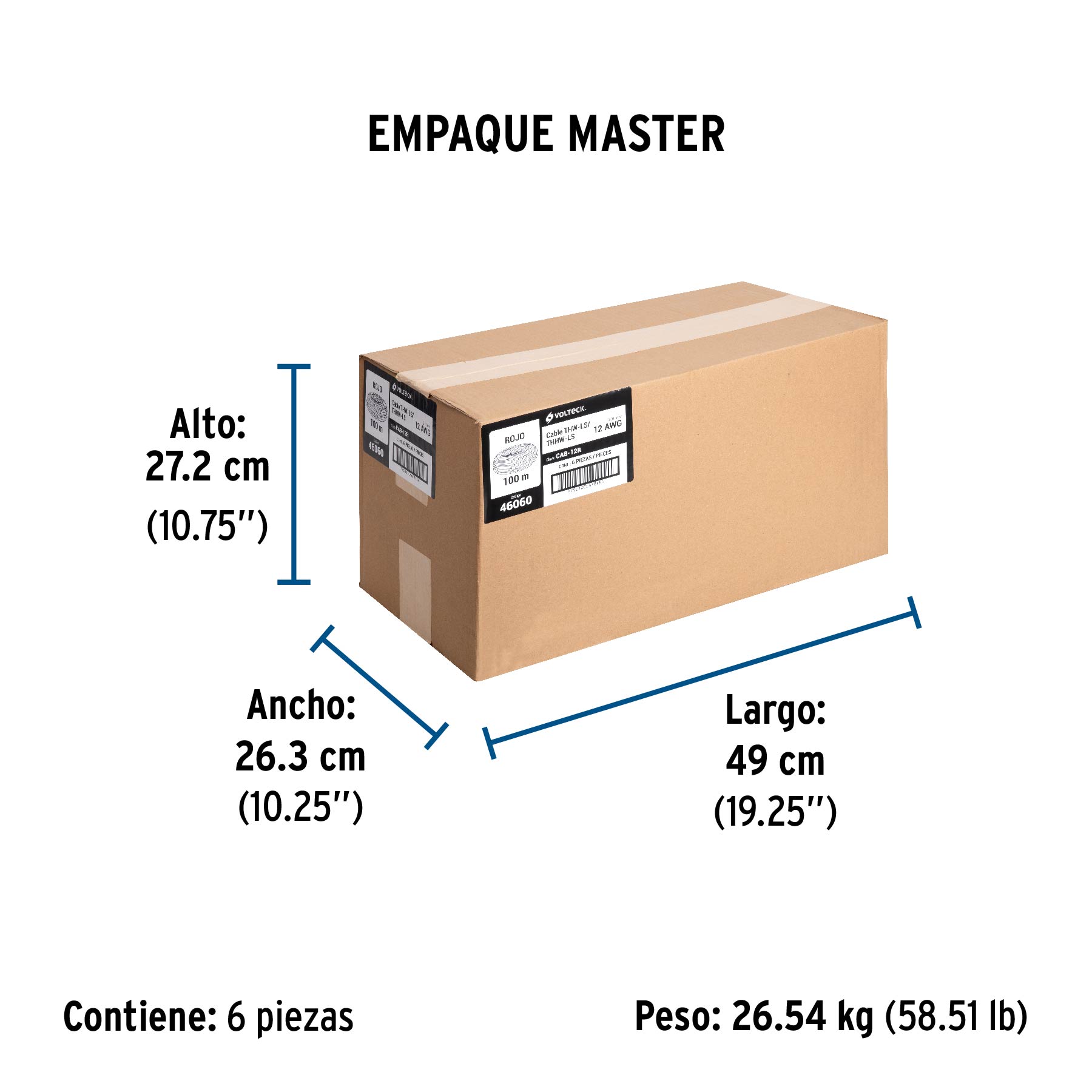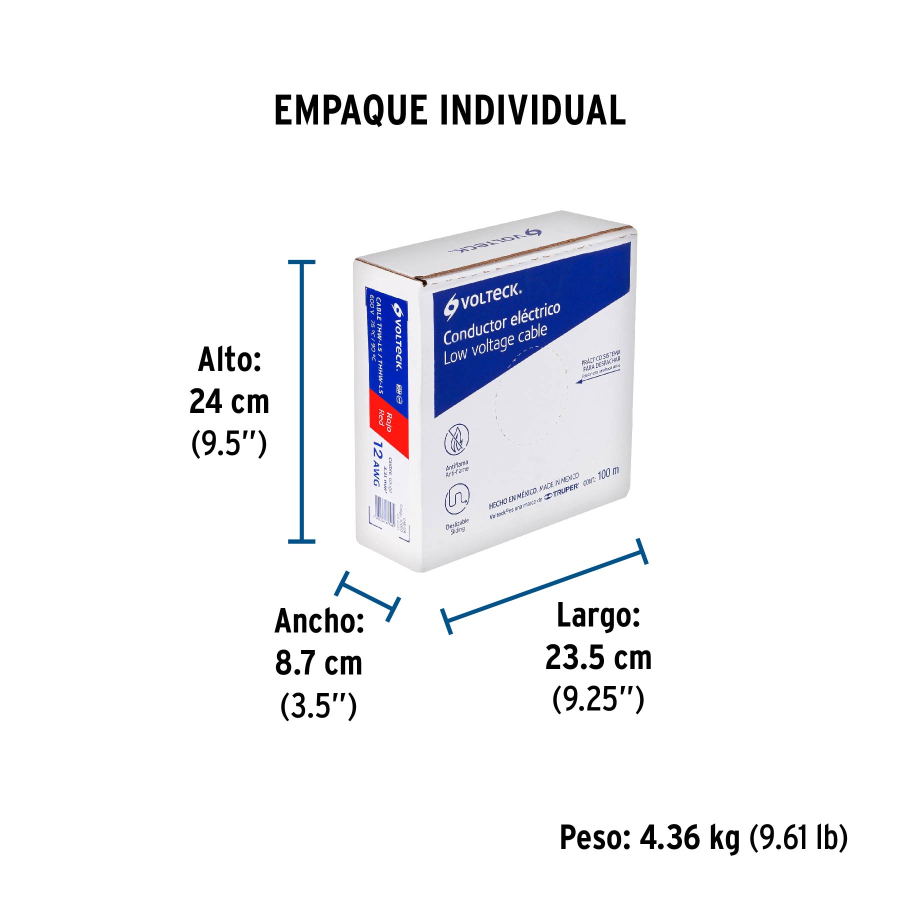Rollo de 100 m de cable THHW-LS 12 AWG rojo, VOLTECK