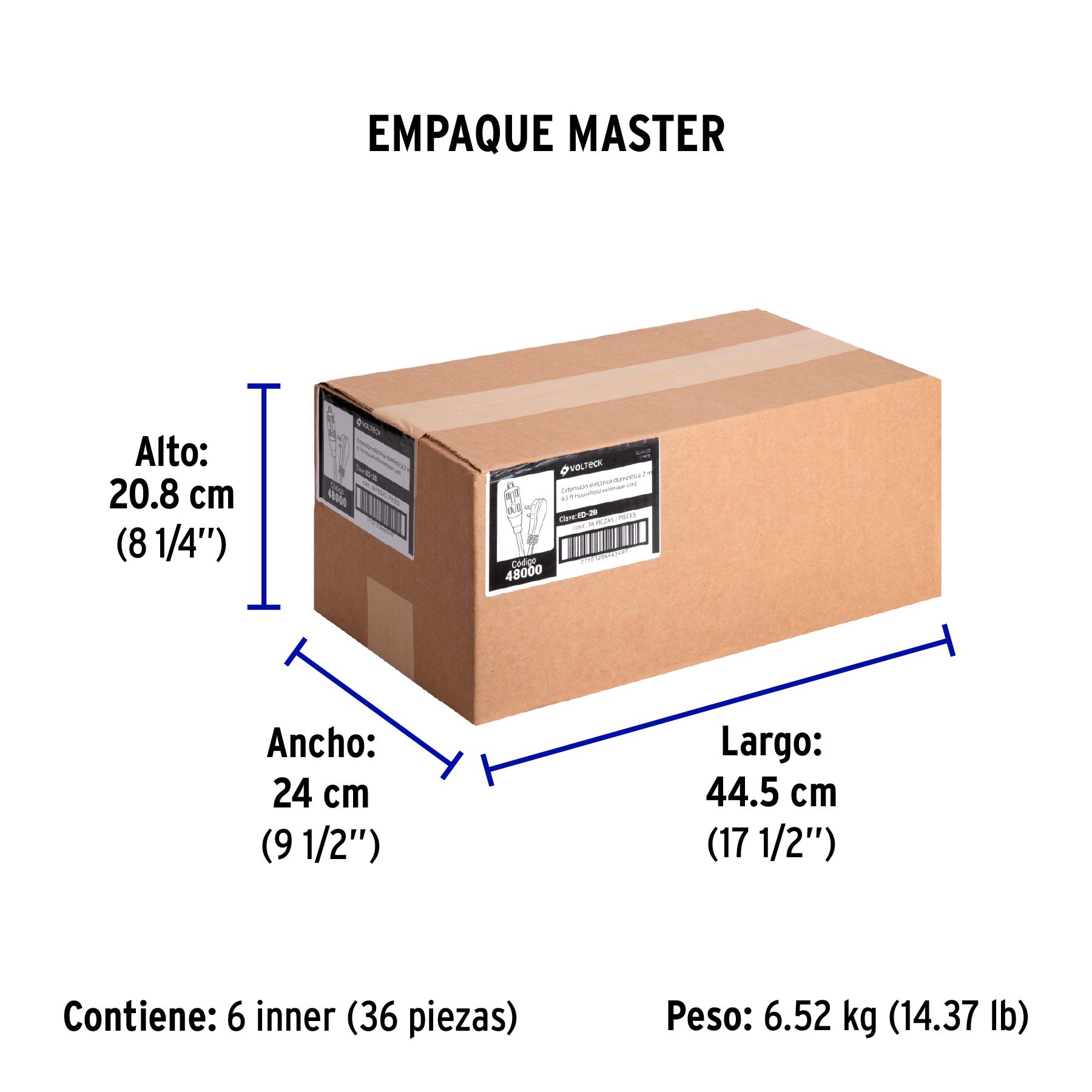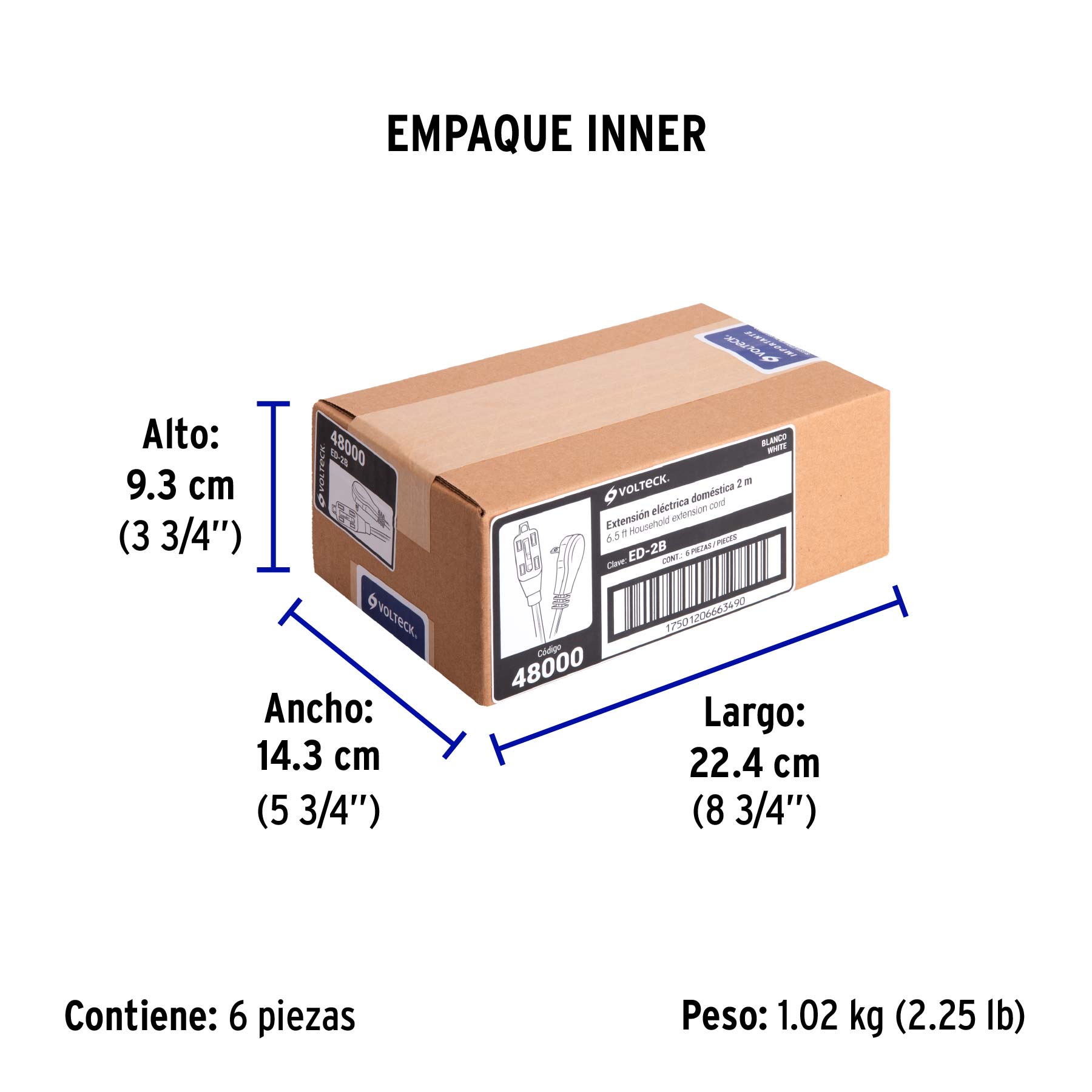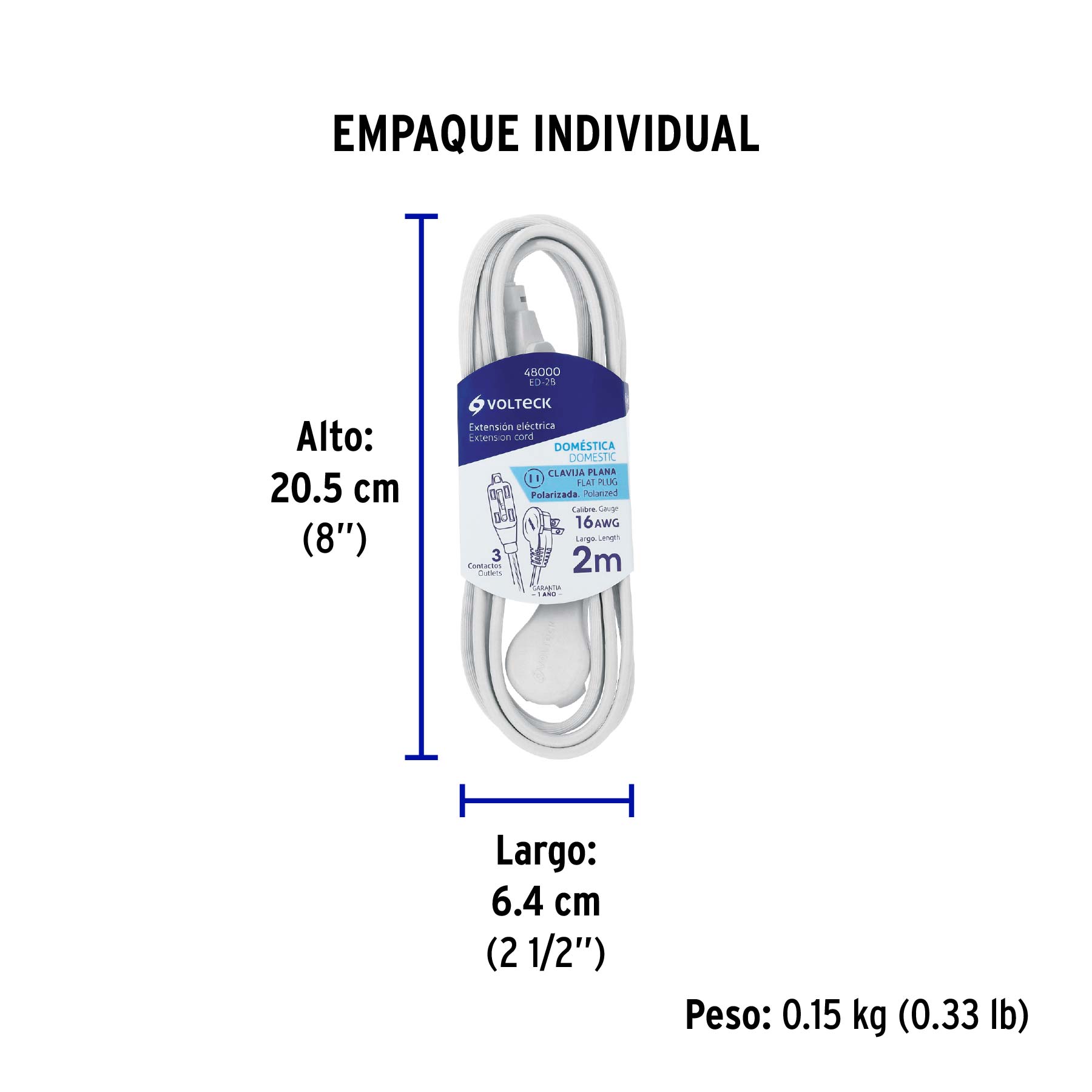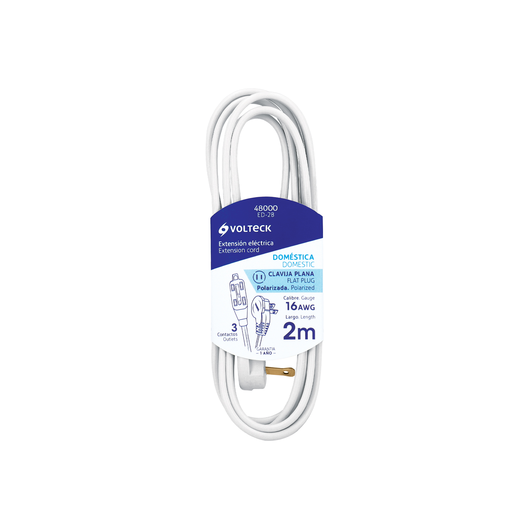 Extensión eléctrica doméstica 2 m clavija plana, blanca