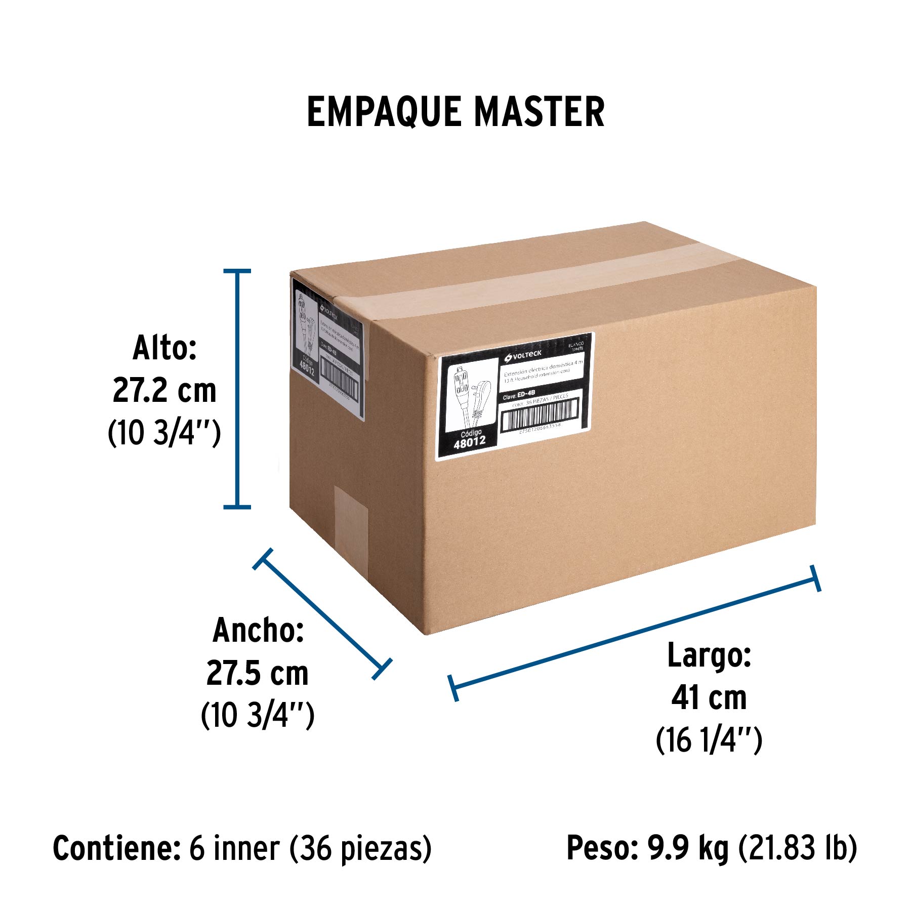 Extensión eléctrica doméstica 4 m clavija plana, blanca
