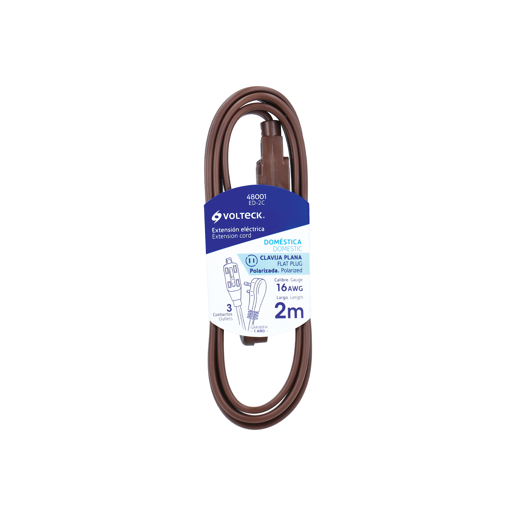 Extensión eléctrica doméstica 2 m clavija plana, café
