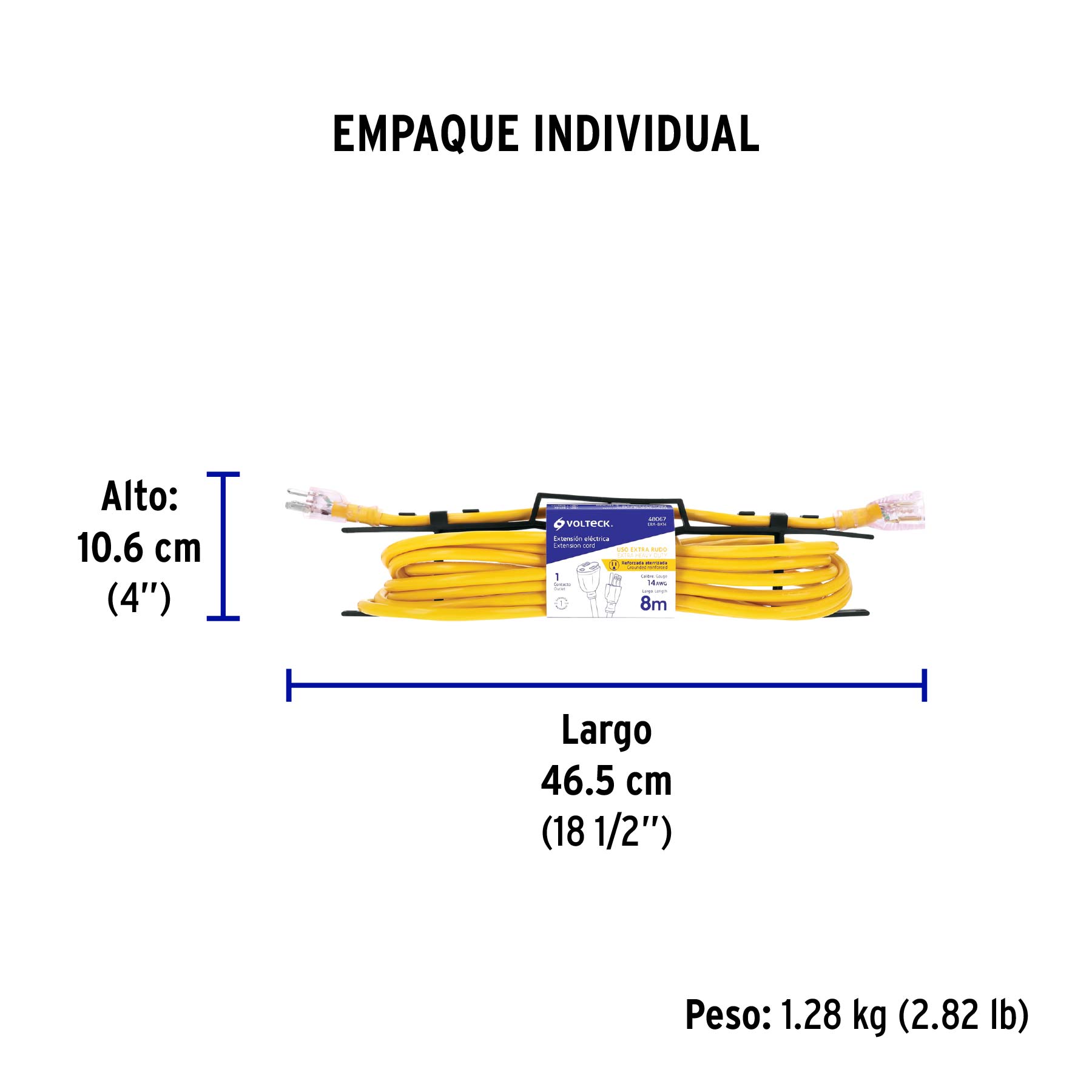 Extensión reforzada aterrizada 8 m 3x14 AWG, VOLTECK