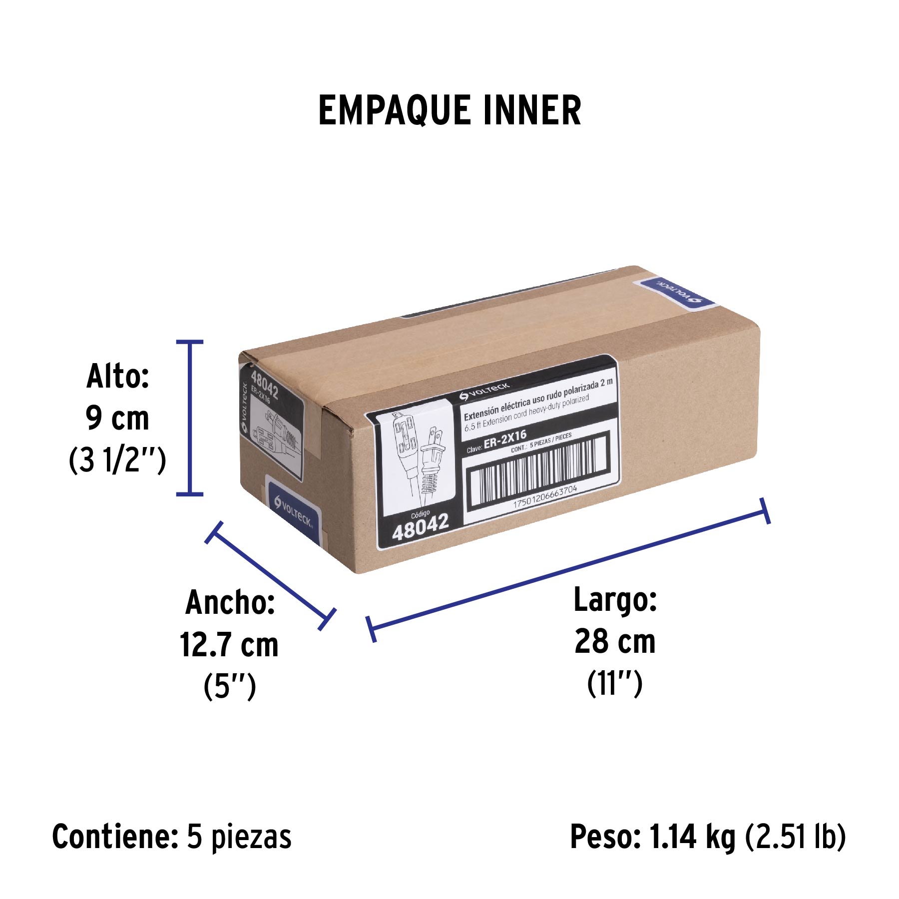 Extensión eléctrica de uso rudo 2 m 2x16 AWG, VOLTECK