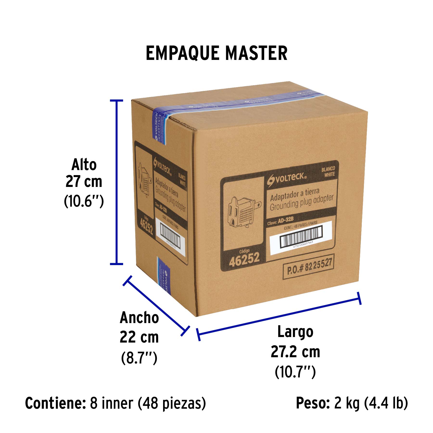 Bolsa con 2 adaptadores 3 a 2 blancos, VOLTECK