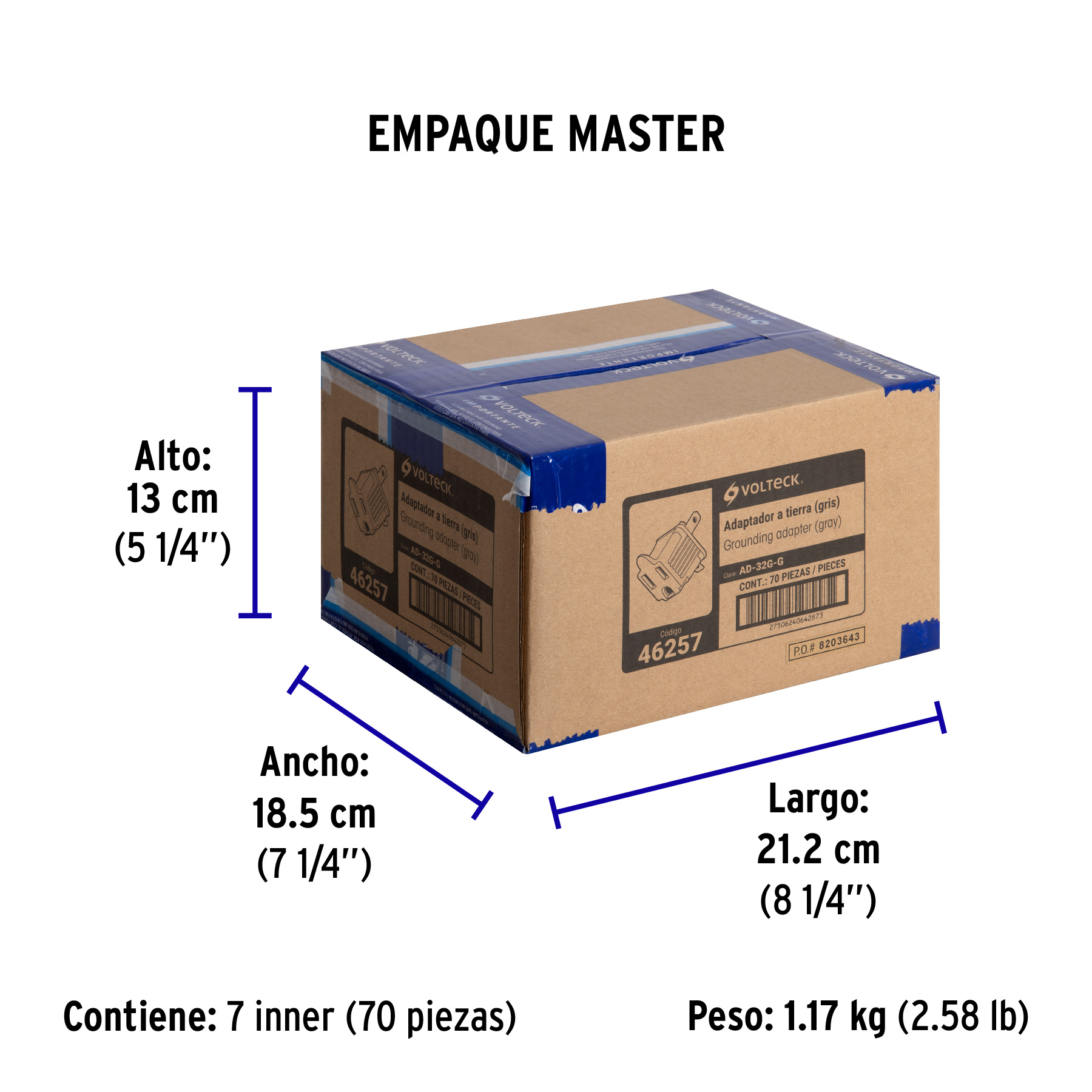 Adaptador 3 a 2, gris, a granel, VOLTECK