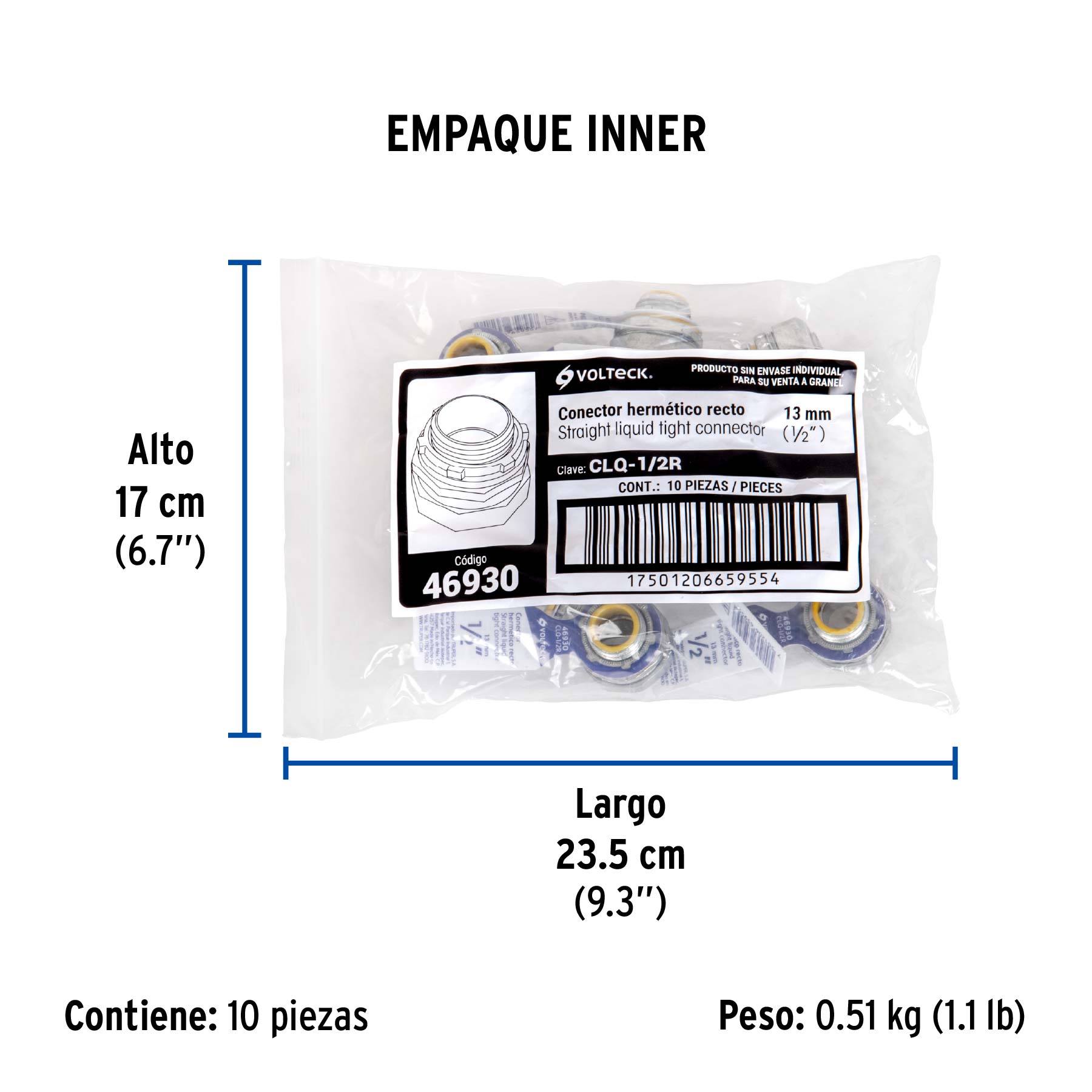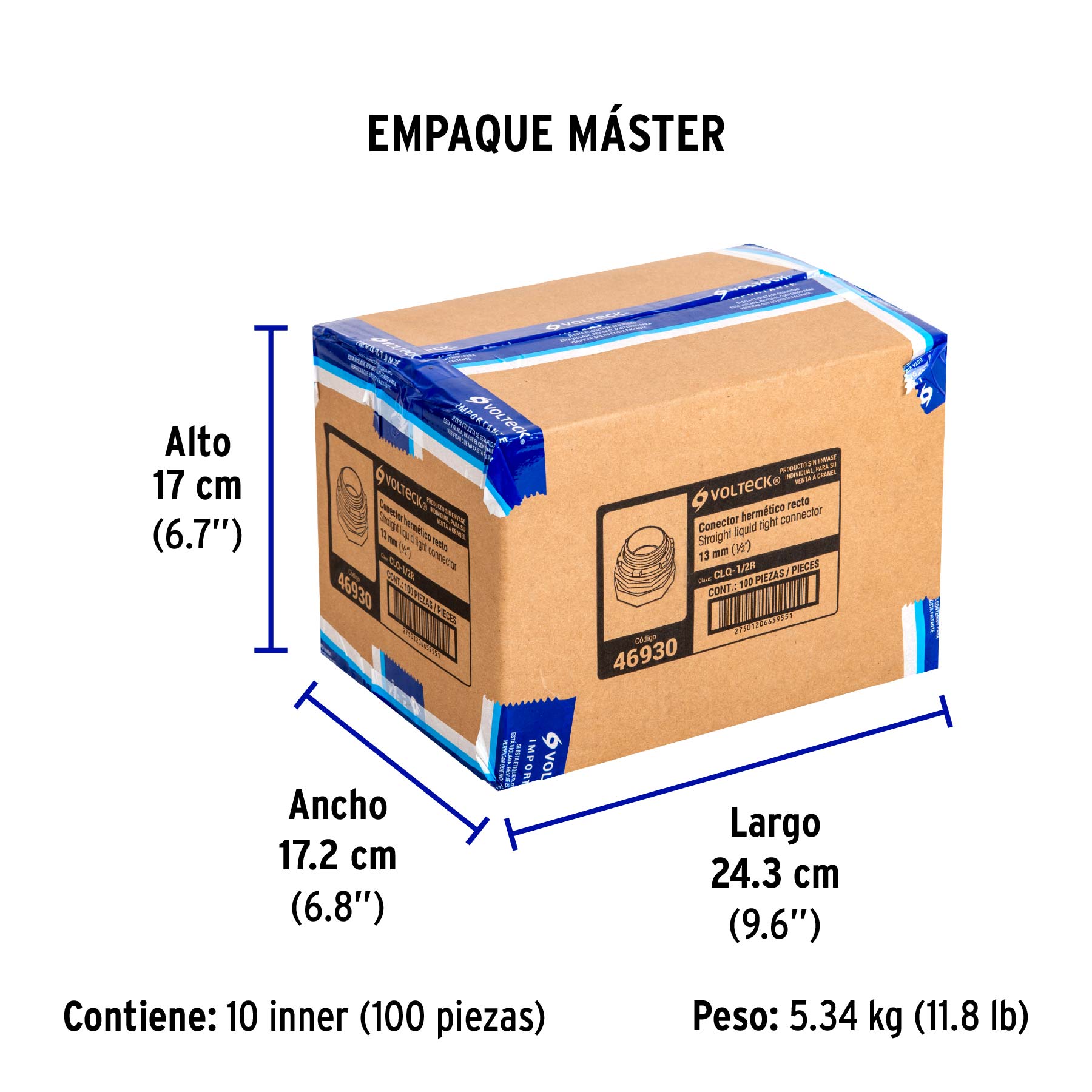 Conector recto 1/2" para tubo liquid tight, VOLTECK