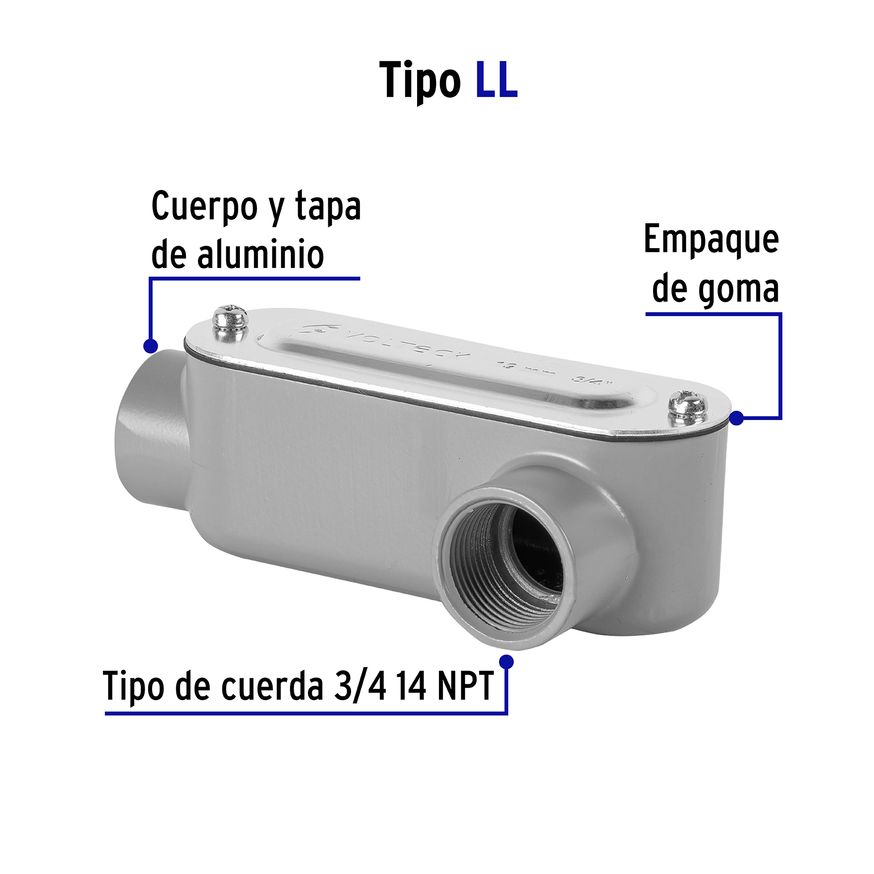 Condulet 3/4" conexión tipo LL, VOLTECK
