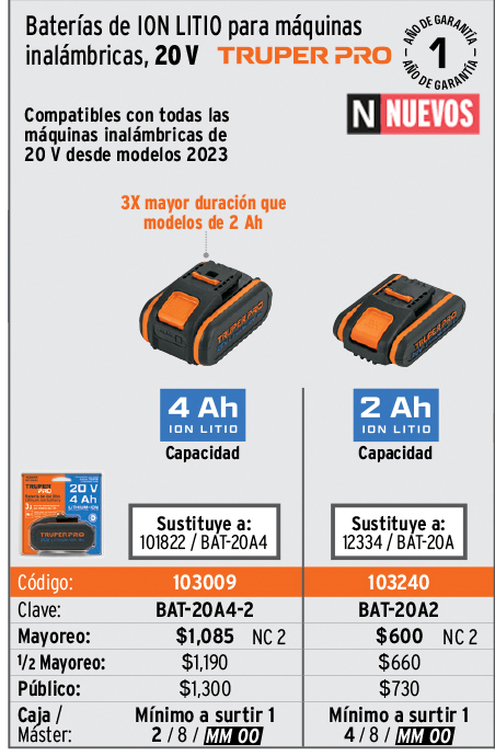 Los precios de este catálogo pueden sufrir cambios que serían publicados en PROMOTRUPER mensual. Los productos ilustrados pueden sufrir cambios sin previo aviso, como resultado de nuestros procesos de mejora continua.