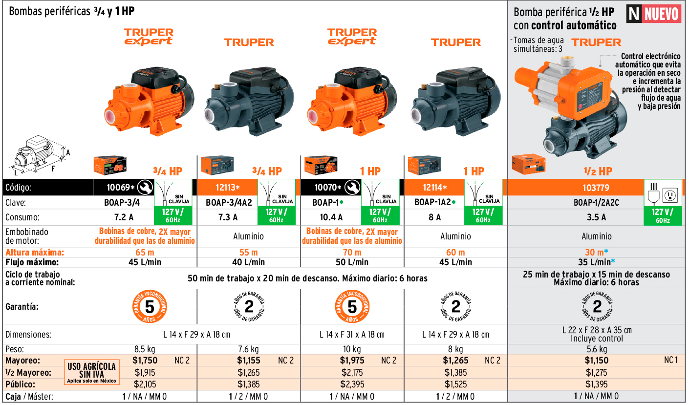 Bombas eléctricas para agua, periféricas
