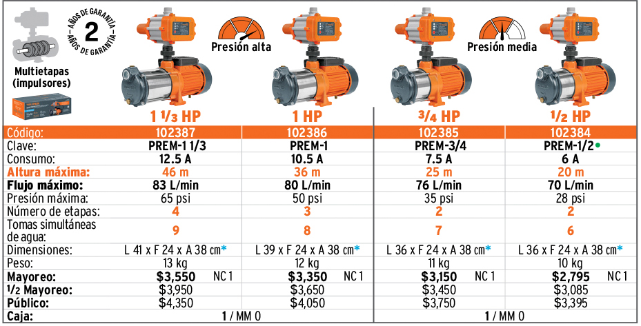 Bombas eléctricas para agua, presurizadoras y multietapas