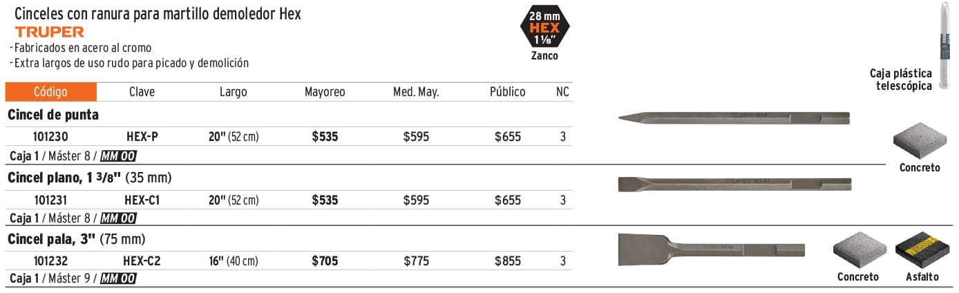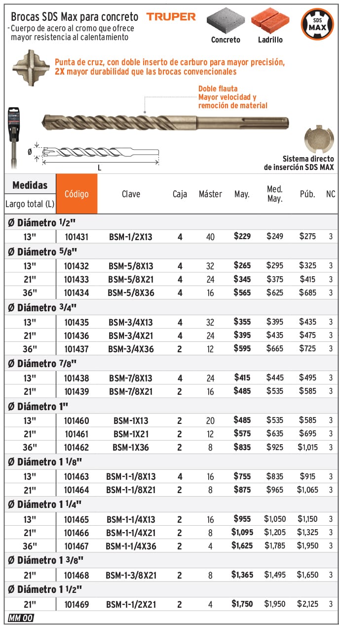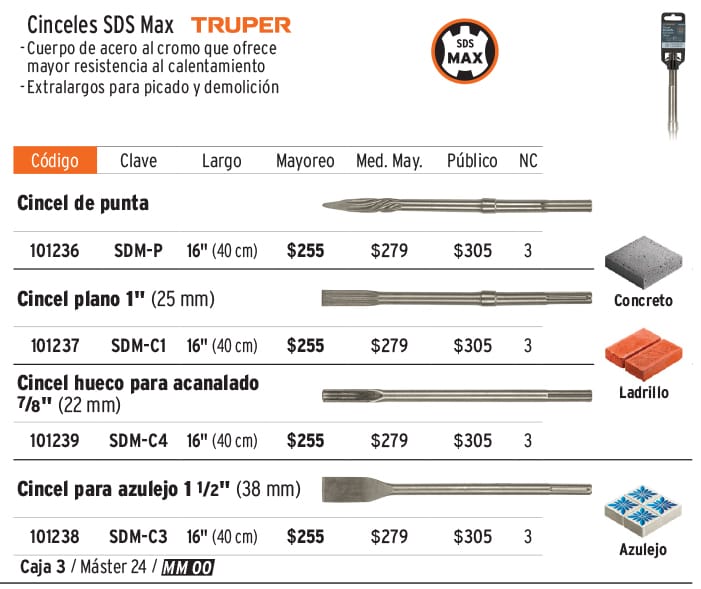 Brocas, cinceles y brocasierras SDS Plus, SDS Max y Hex